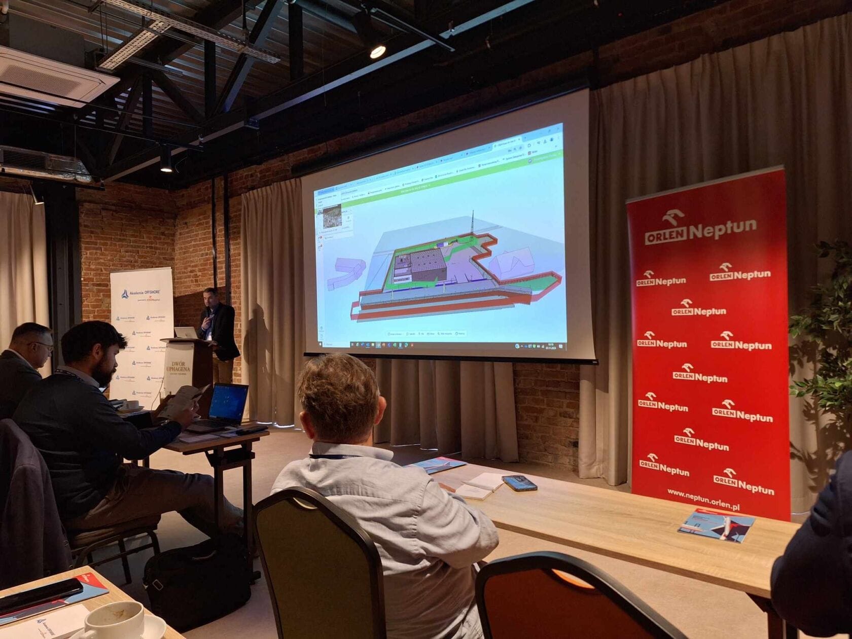 Prezentacja 3D podczas konferencji w przestrzeni ceglanej
