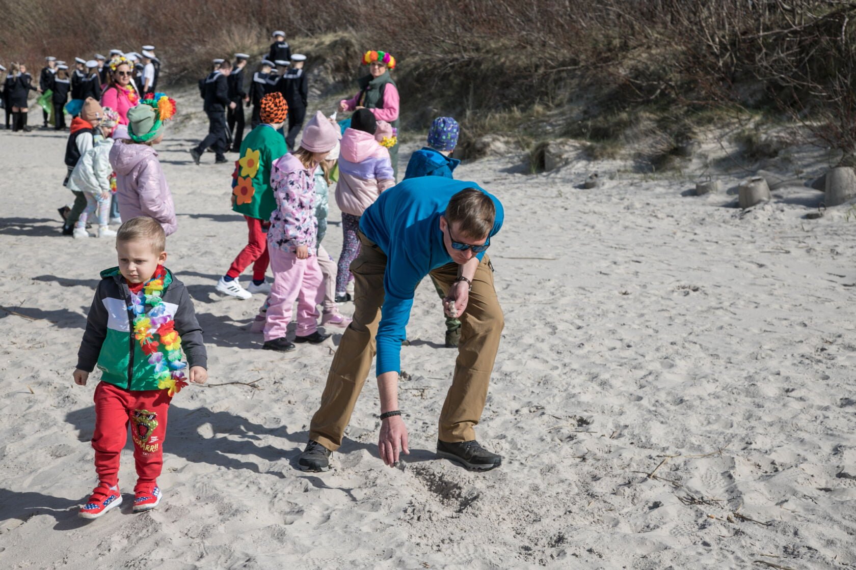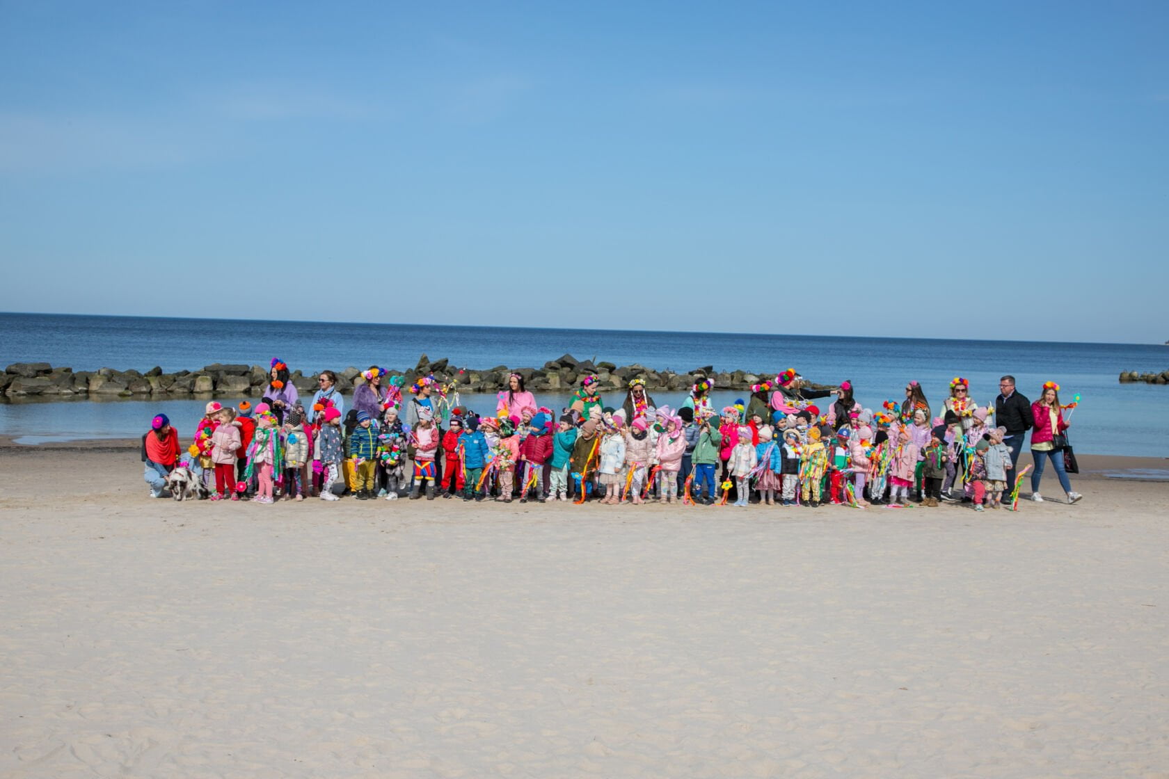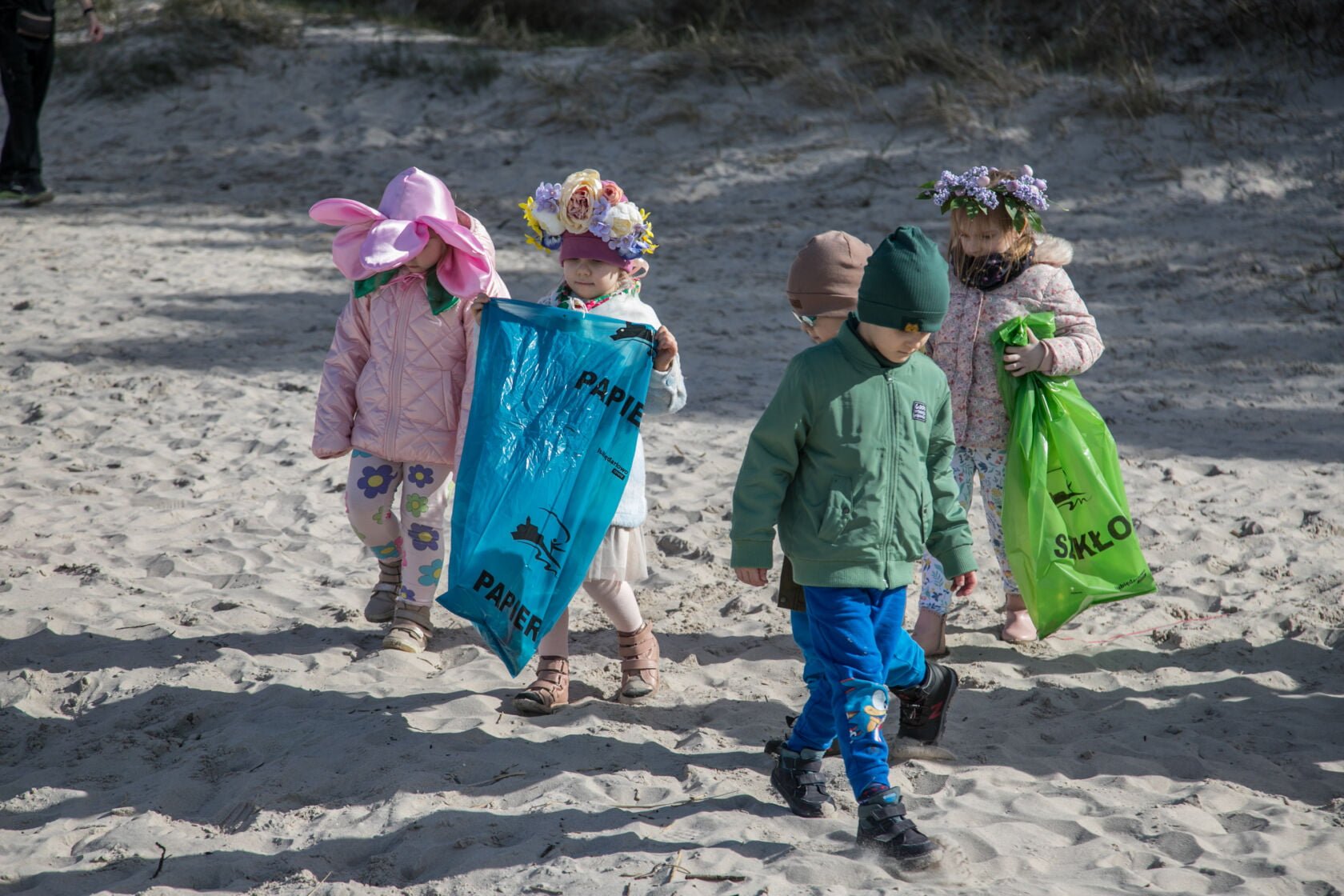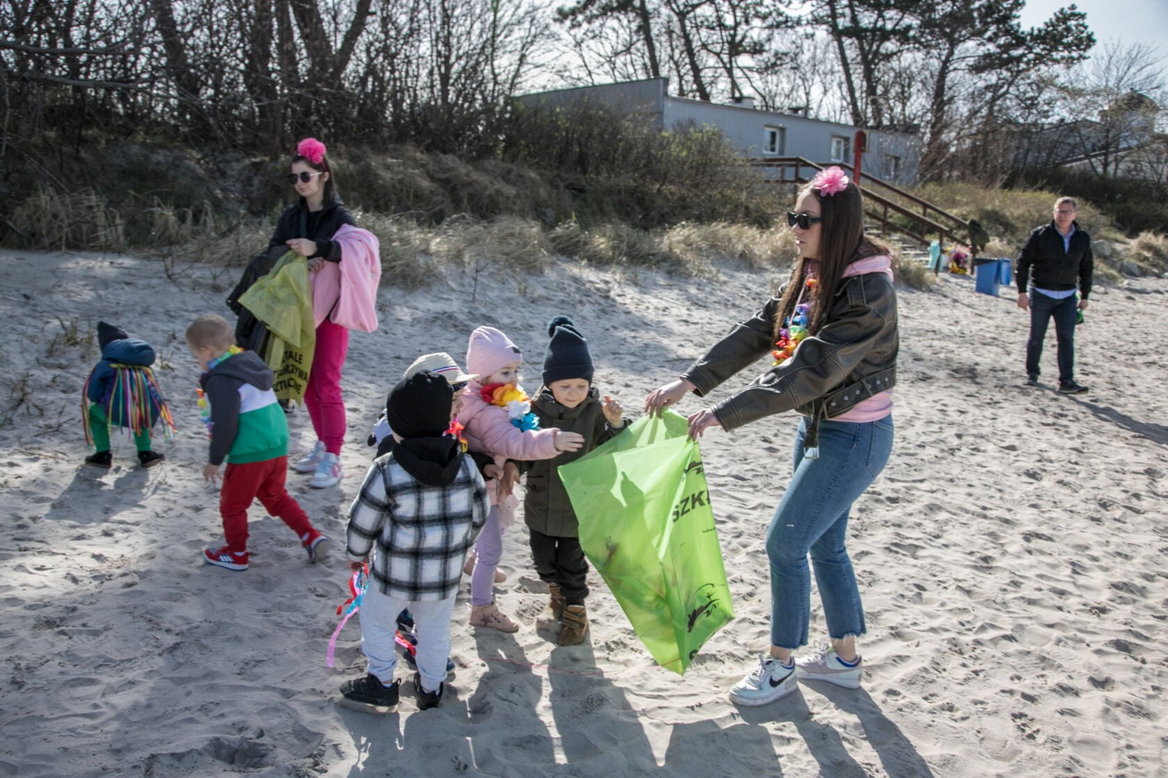 Członkowie wyprawy wraz z uczniami szkoły i przedszkolakami wspólnie sprzątali plażę w Darłówku.