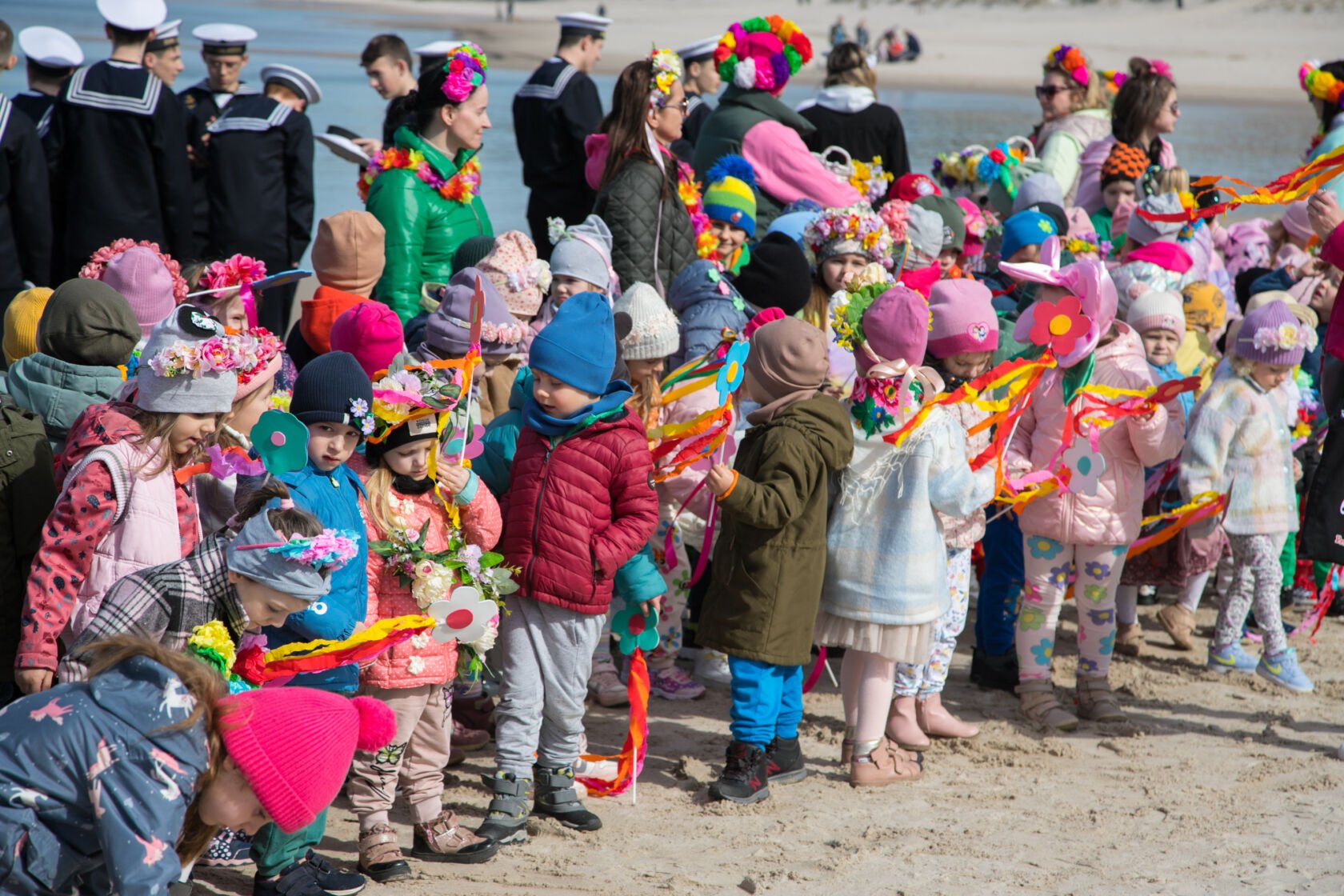 Na plaży w Darłówku powitała ich delegacja złożona z podopiecznych „Przedszkola przy szkole”, uczniów Szkoły Morskiej w Darłowie oraz Zastępcy burmistrza Rafała Nagórskiego.