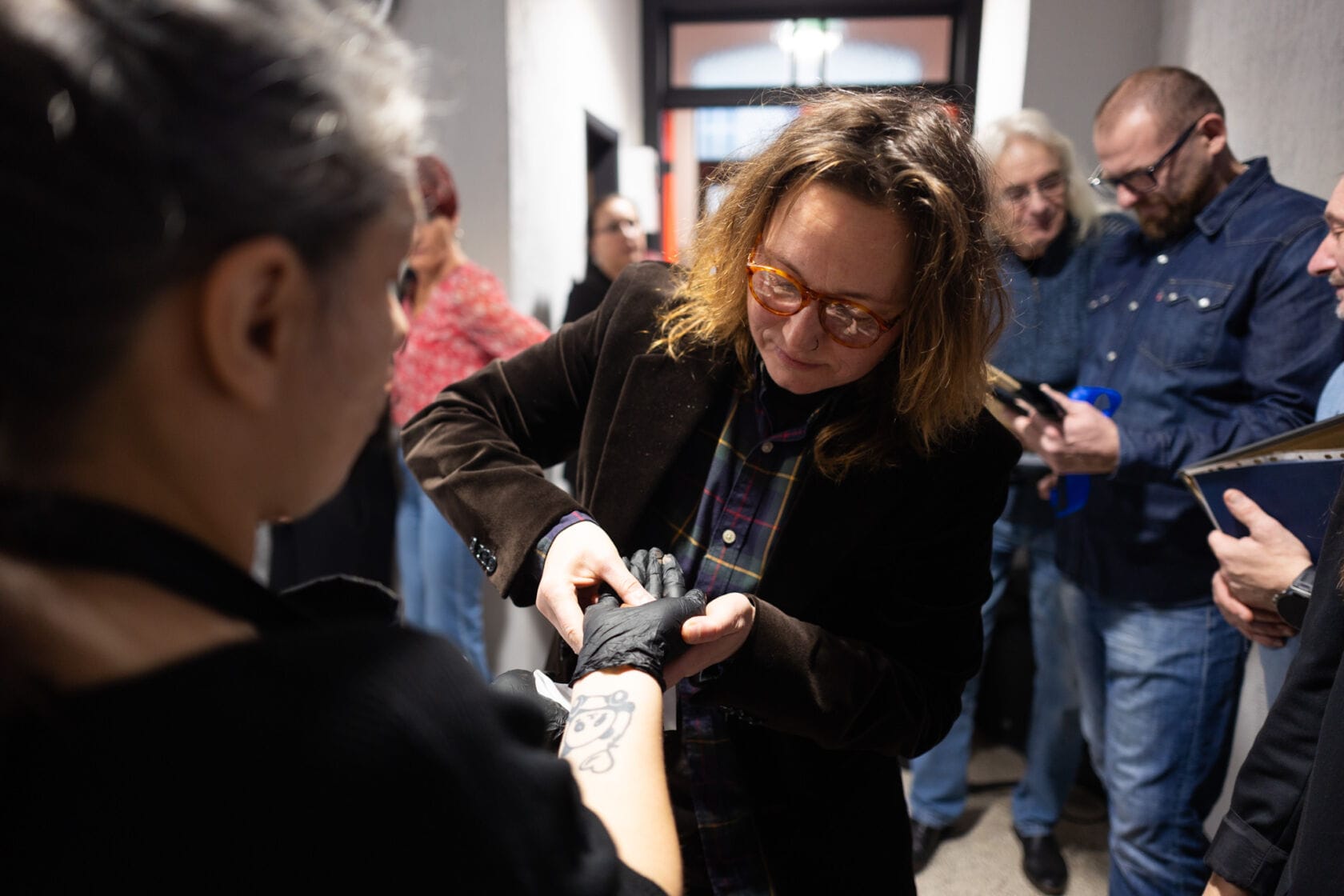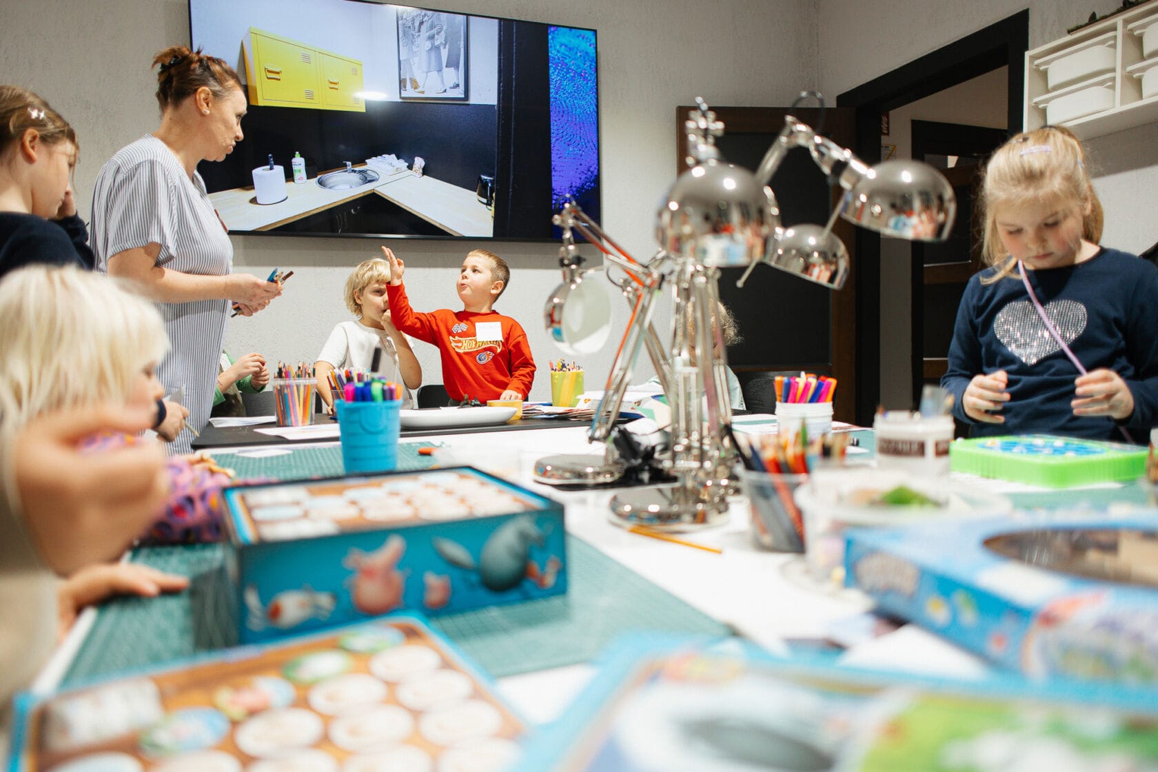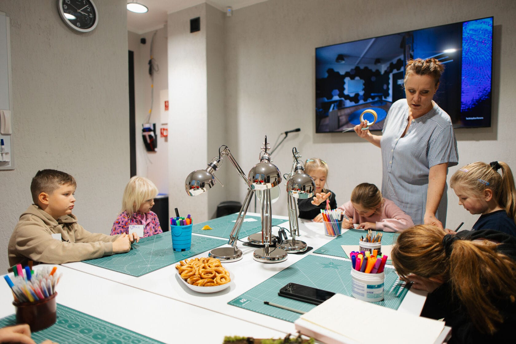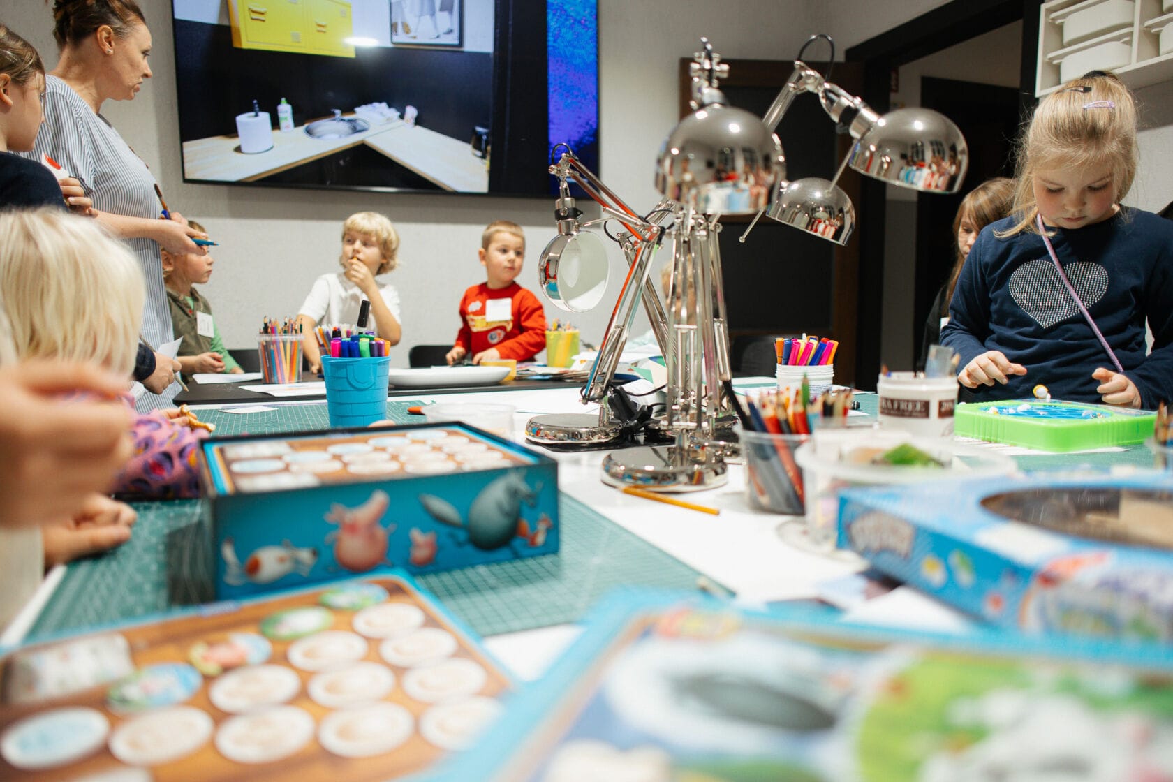 Od godziny 15:00 odwiedzający korzystali z dwóch propozycji warsztatowych. W Galerii SKŁO44 Anna Grabowska i Magdalena Zawadka poprowadziły zajęcia „Dermatoglify i minucje – nasz odcisk w historii Darłowa”, poświęcone motywom linii papilarnych i ich symbolice. Równolegle w „SKŁOCIE” kulturalnym Ewa Ryk zapraszała uczestników do wspólnego tworzenia makiety darłowskiej starówki.