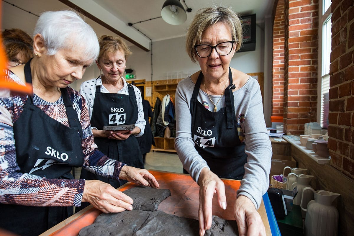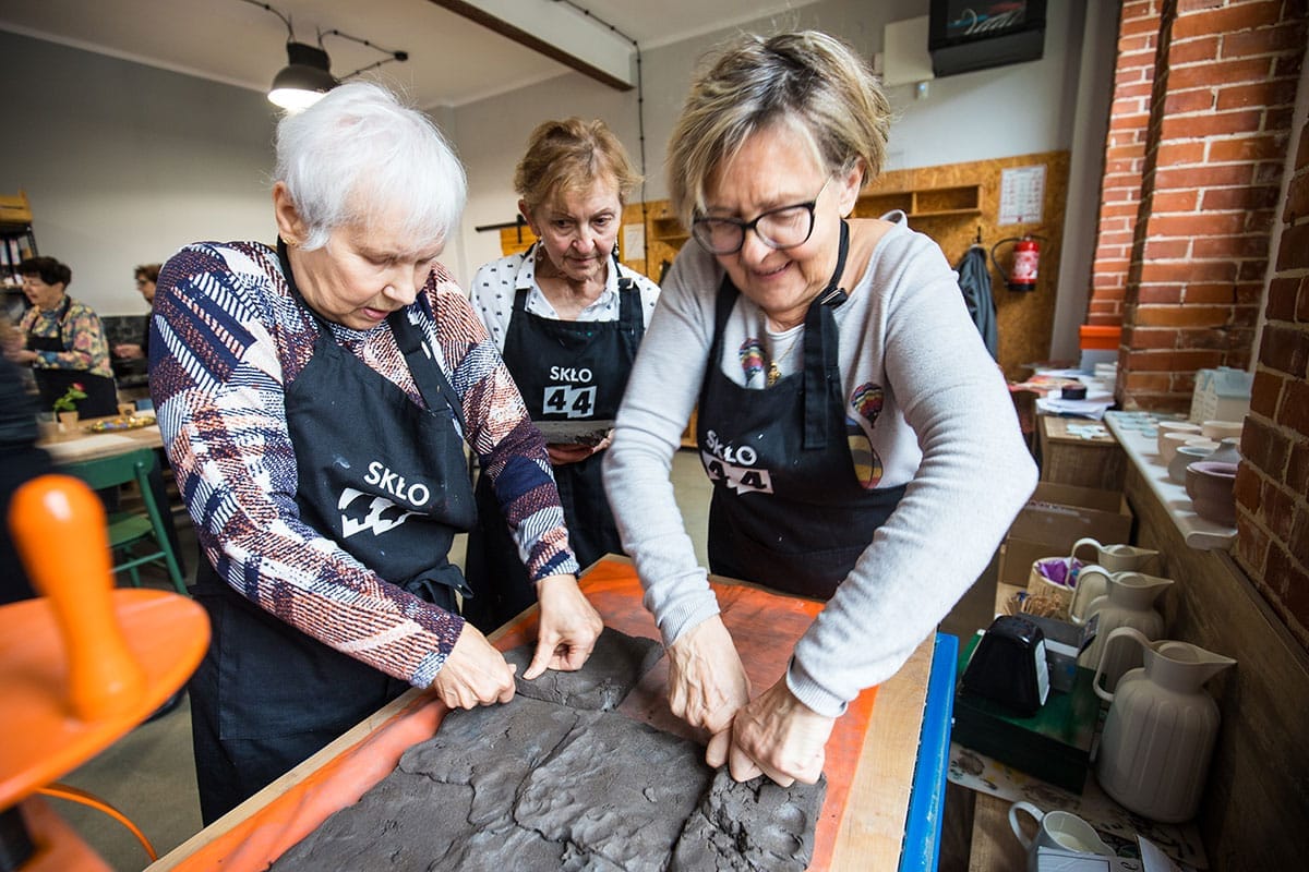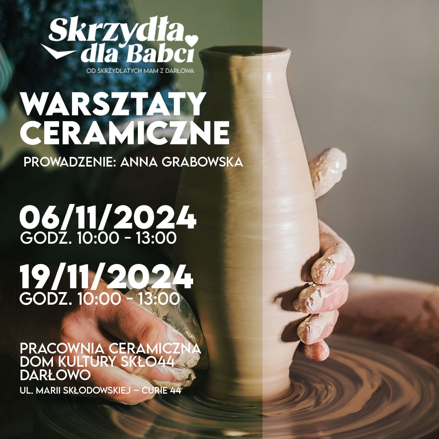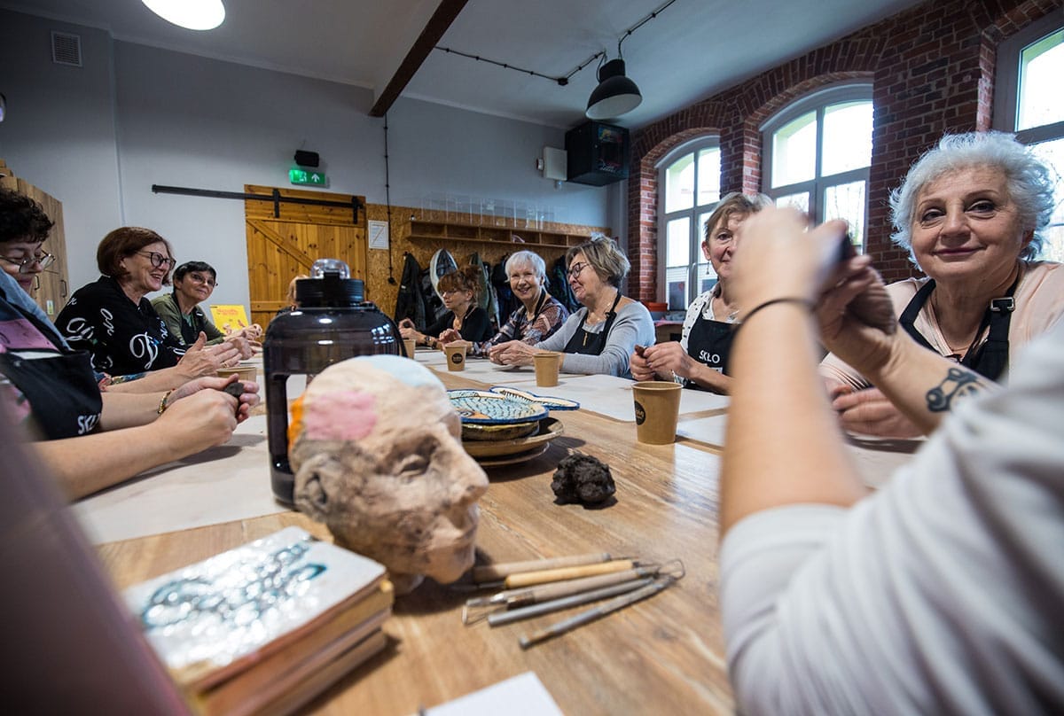 6 listopada 2024 roku Uczestniczki projektu pn.: „Skrzydła dla Babci” rozpoczęły zajęcia praktyczne. Na dobry początek organizator zaplanował warsztaty ceramiczne z wprowadzeniem do tajemnic świata gliny. O technikach, rodzajach i wielu ważnych aspektach ceramicznej wiedzy opowiadała barwnie Anna Grabowska w Pracowni Ceramicznej SKŁO44 należącej do Darłowskiego Ośrodka Kultury.