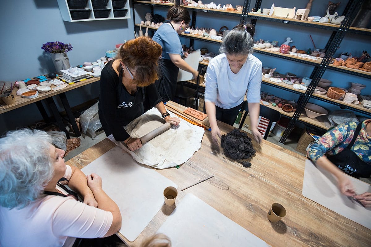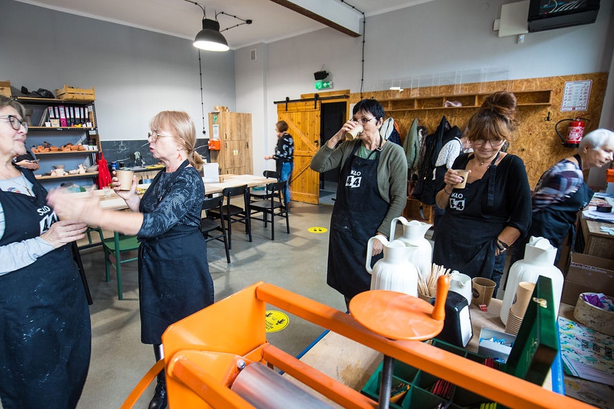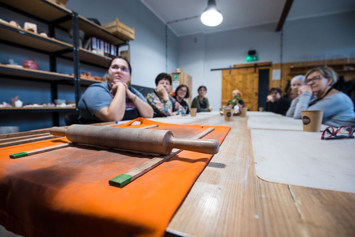 Panie nie tylko lepiły i walcowały glinę. Miały także czas i przestrzeń do rozmów towarzyskich, podczas których wymieniały się anegdotami z podróży, przepisami na najlepsze placki ziemniaczane – co czyniły przy pysznej, aromatycznej małej czarnej – pitej z kulturą;-)
