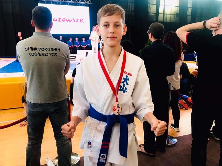 Młody karateka z medalem na zawodach w Polsce