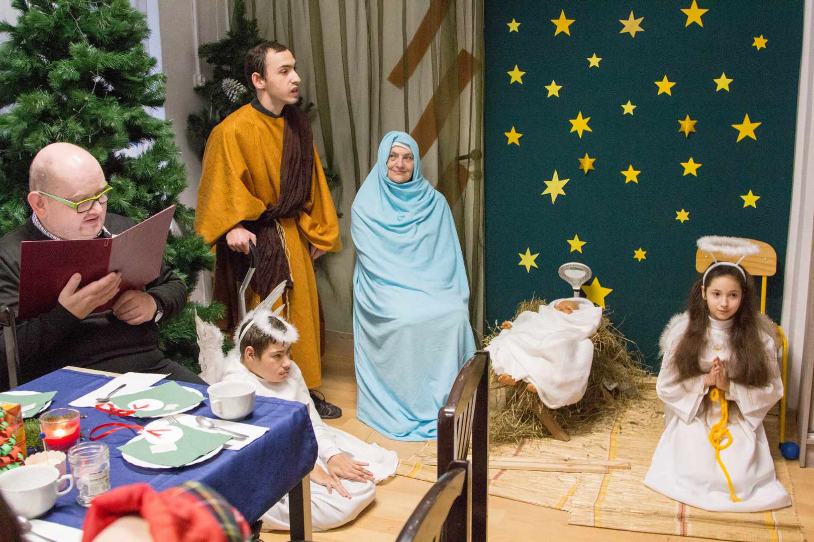 Spotkanie wigilijne w Dziennym Ośrodku Rehabilitacyjno-Terapeutycznym (DORT) odbyło się o godzinie 11:30. Przy wspólnym stole zasiedli opiekunowie, podopieczni Ośrodka, ich rodziny i przyjaciele, a także przedstawiciele władz miasta gminy i powiatu. Podopieczni DORT odegrali piękną scenkę nawiązującą do świąt Bożego Narodzenia, podczas której zebrani śpiewali kolędy i pastorałki.