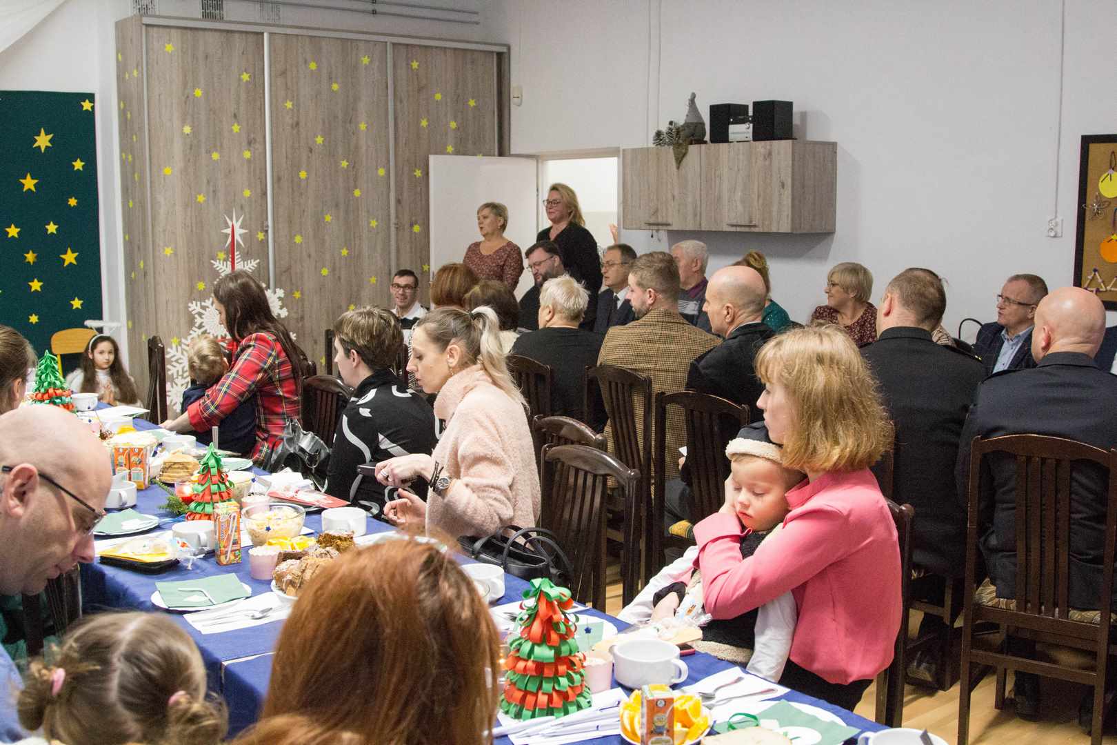 Gości częstowano tradycyjnymi wigilijnymi potrawami oraz ciastem, symbolicznie podzielono się także opłatkiem.