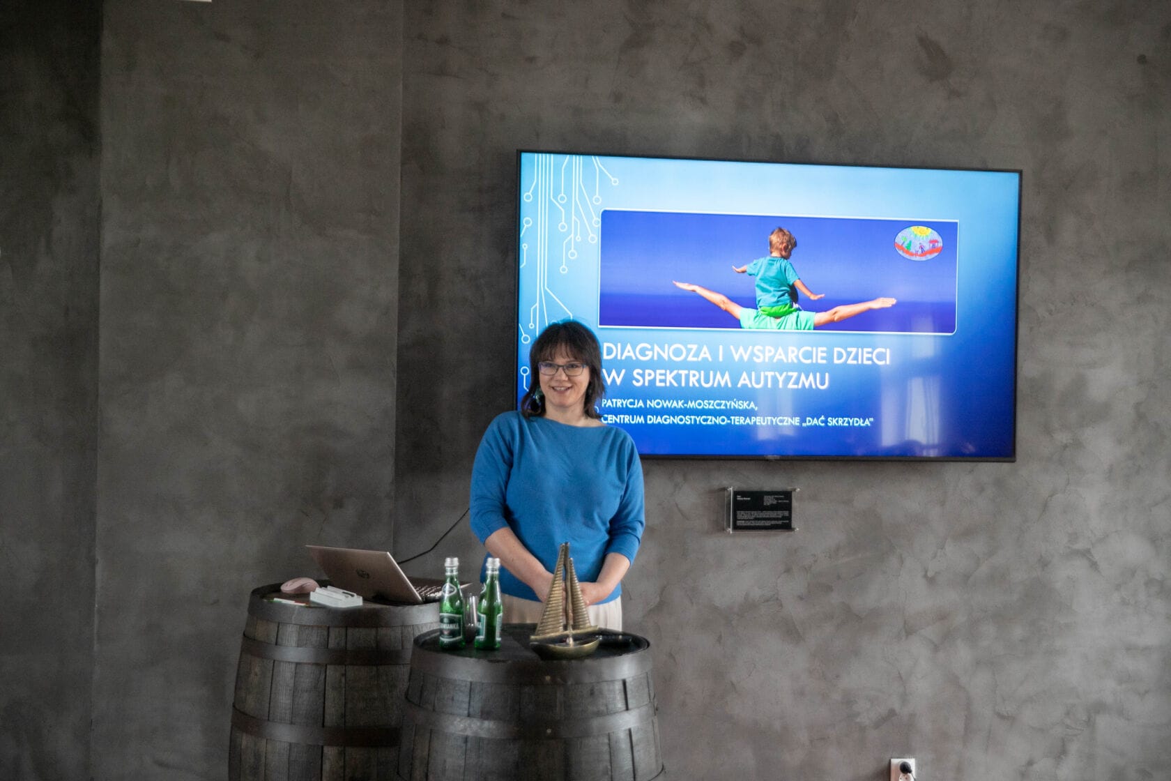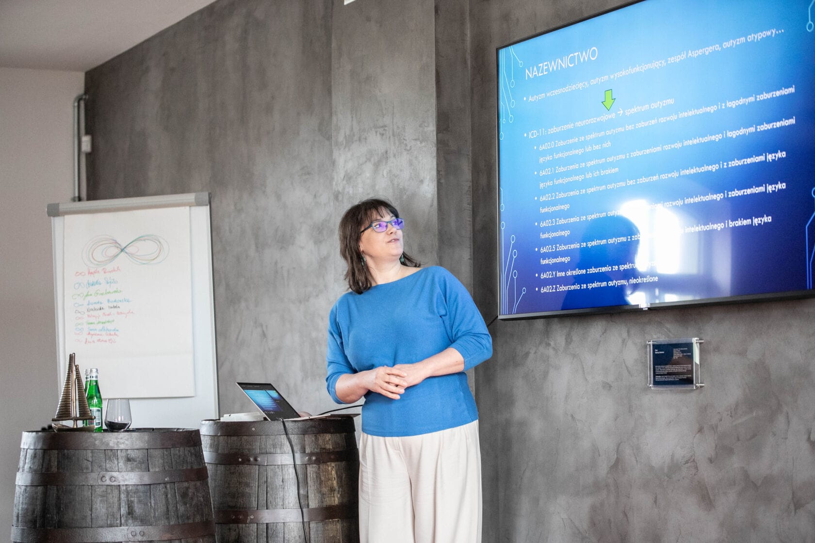 Kobieta prezentuje wykład o autyzmie