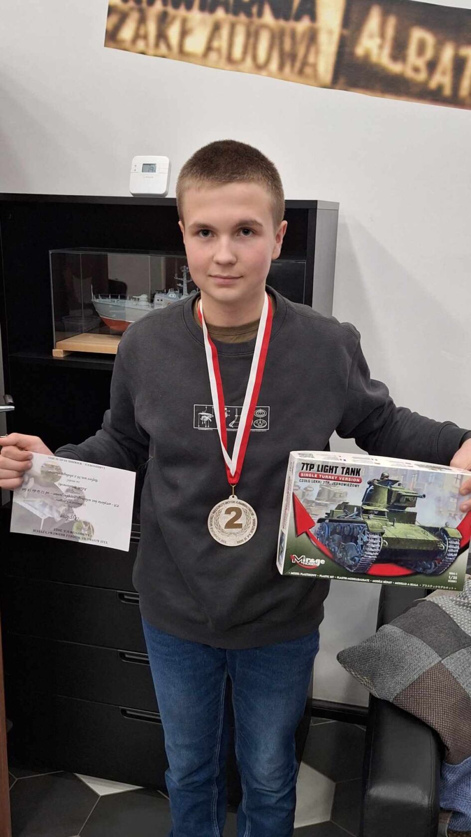 W dniach 18.-19.11.2023 rozegrano w Toruniu XXII Mistrzostwa Polski w kolekcjach modeli redukcyjnych. Modelarze z Polski, Czech i Słowacji walczyli w dziesięciu kategoriach modelarskich w grupach wiekowych seniorów i juniorów. Medale zdobyli darłowscy modelarze działający w kole modelarskim przy Darłowskim Ośrodku Kultury im. Leopolda Tyrmanda. Drugie miejsce w juniorskiej kategorii “Pojazdy wojskowe w skali 1/72” zdobył Adam Brzozowski za kolekcję “Wrzesień 1939” (z materiałów od darczyńcy – Pana Marcina Wawrzynkowskiego). W seniorskiej kategorii “Okręty” złoty medal otrzymał za kolekcję “Okręty bitwy jutlandzkiej” Artur Hamerling – instruktor koła modelarskiego. Kolekcja ta uzyskała też drugi wynik punktowy całych mistrzostw (98 na 100 punktów). W ogólnopolskim konkursie Modelarskim w Łambinowicach w dniach 03.-05.11.2023 w kategorii juniorskiej srebrny medal za pracę poświęconą kampanii wrześniowej otrzymał Adam Brzozowski. W grupie seniorów dwa złote medale w dwóch rozegranych kategoriach okrętowych zdobył Artur Hamerling. Serdecznie gratulujemy i życzymy dalszych sukcesów!