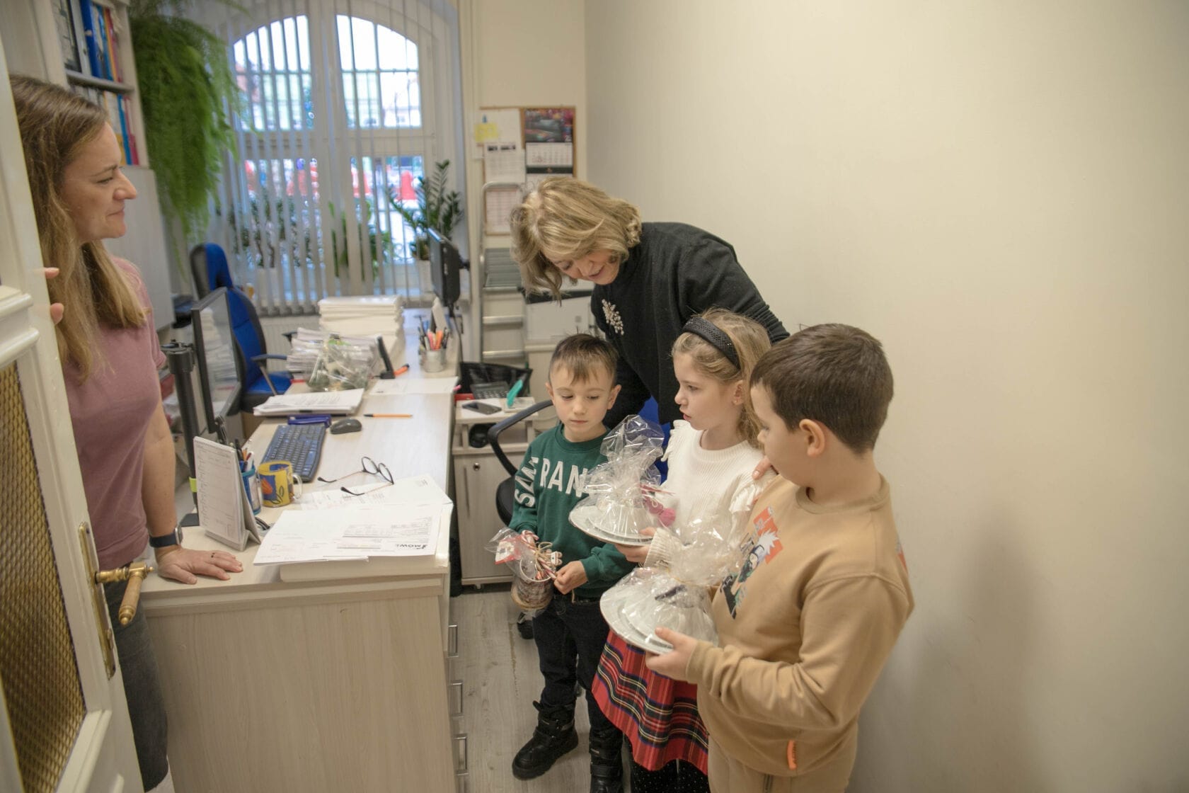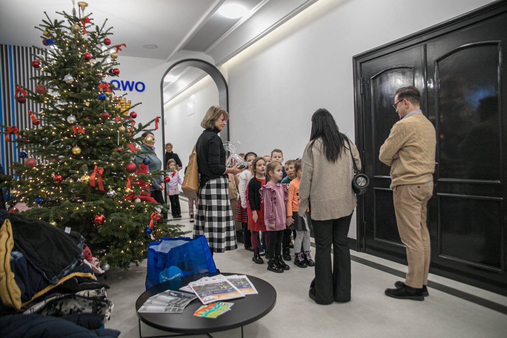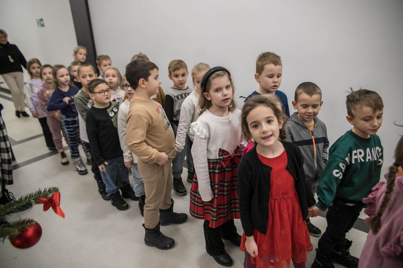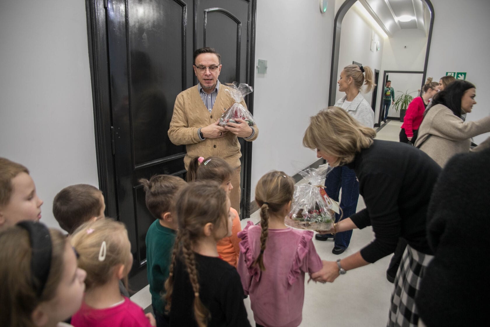 Dzieci wniosły ze sobą mnóstwo uśmiechu i radości, śpiewając świąteczną piosenkę oraz składając wszystkim serdeczne życzenia.