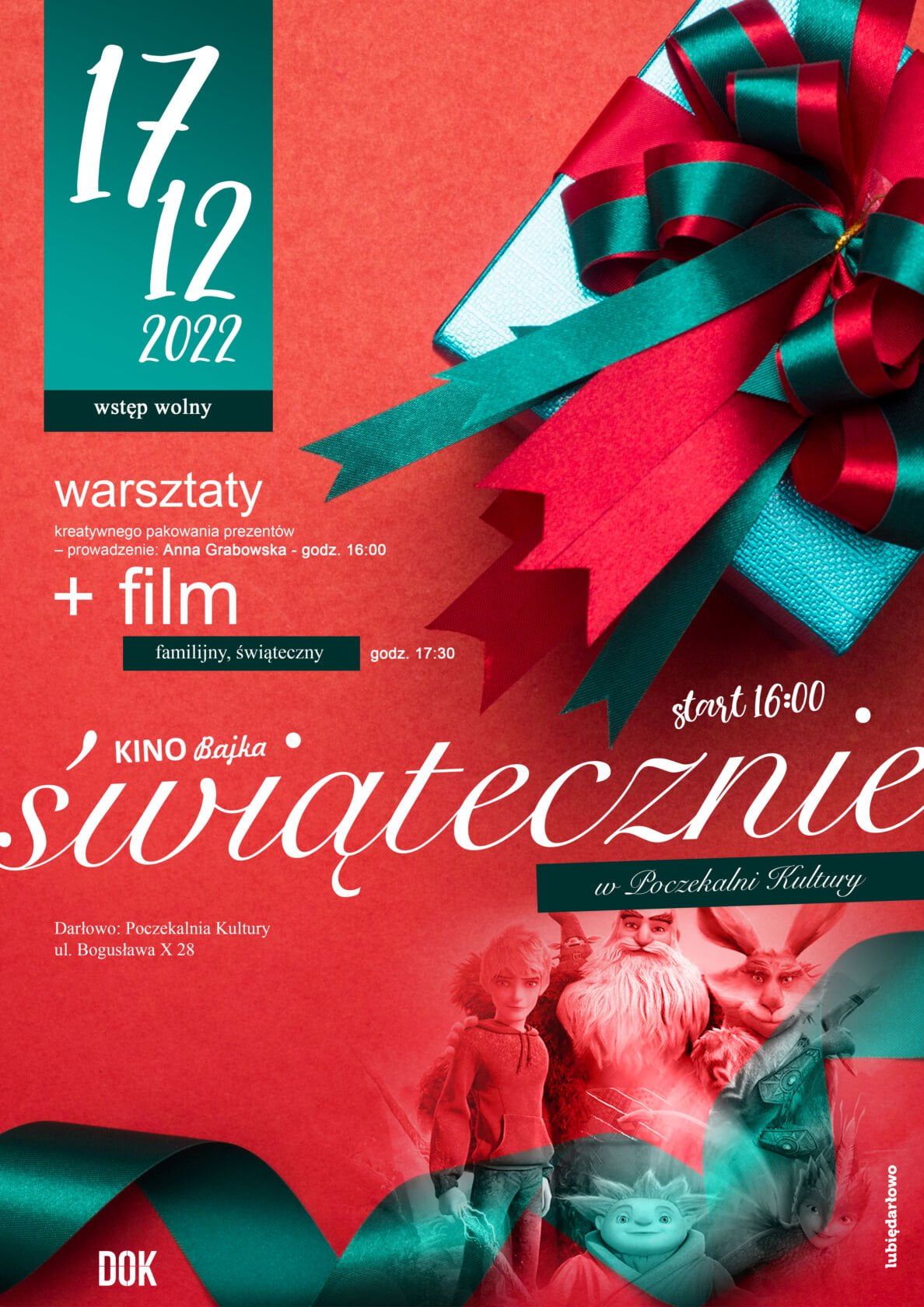 17 grudnia 2022 –Kino Bajka świątecznie w Poczekalni Kultury. Wspólne oglądanie świątecznego filmu familijnego oraz warsztaty kreatywnego pakowania prezentów. Prowadzi Anna Grabowska (wstęp wolny).