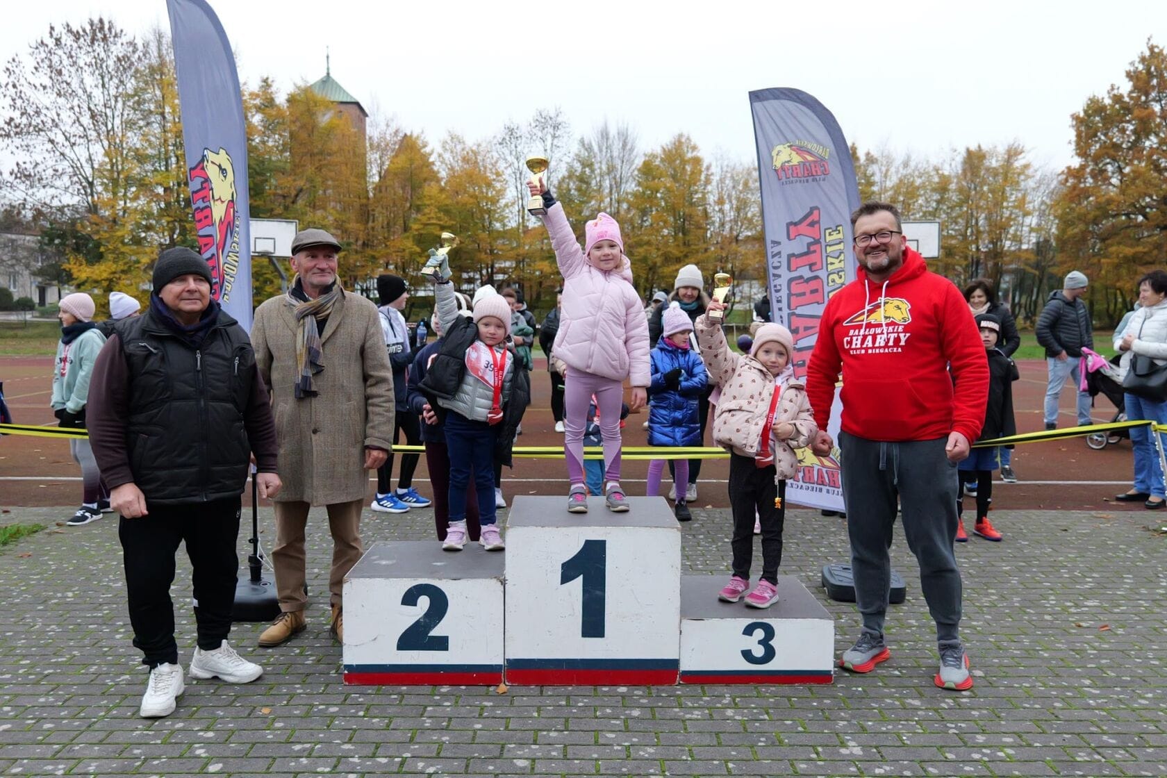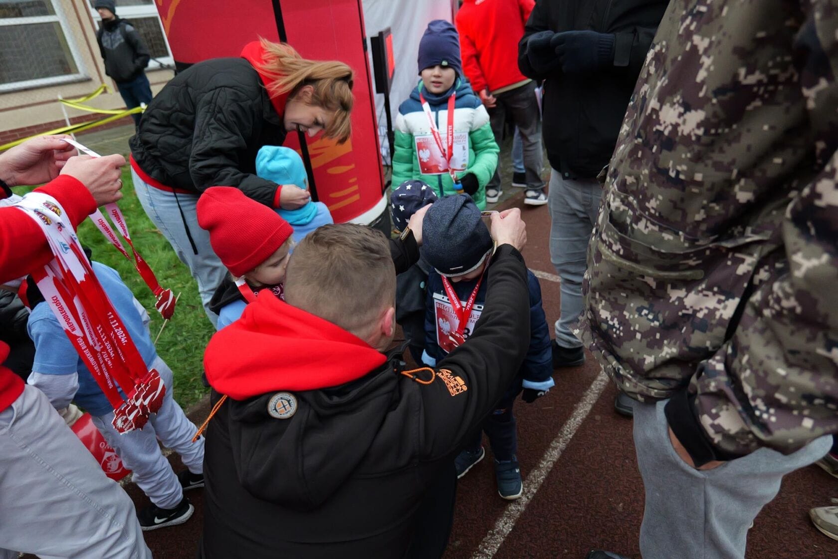 Na mecie czekały na nich okolicznościowe medale, słodki poczęstunek oraz woda. Najlepsze trójki z każdego biegu wyróżniane były pucharami na podium oraz oczywiście oklaskami licznie zgromadzonych kibiców. Po biegach dzieci, Darłowskie Charty zaprosiły wszystkich przybyłych do pokonania wspólnej „Rundy Niepodległości” i był to najliczniejszy bieg tego dnia. Po nim wszyscy wspólnie odśpiewali mazurka Dąbrowskiego.