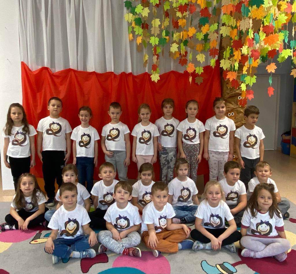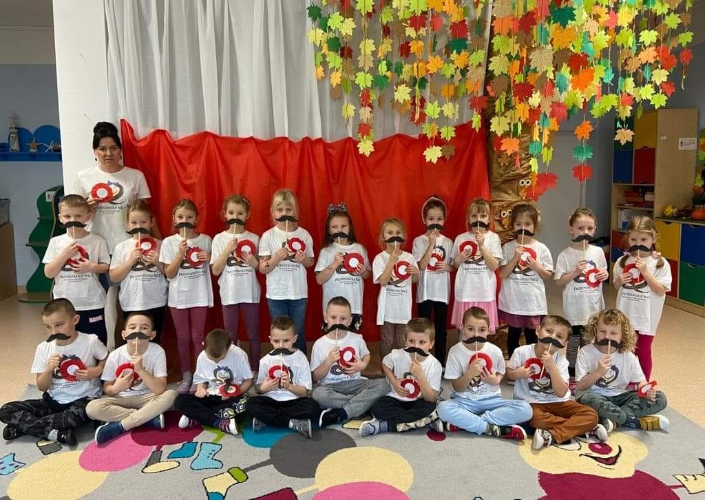 Znają ,,Mazurek Dąbrowskiego” i potrafią przyjąć odpowiednią postawę podczas jego śpiewania. Dzieci wspólnie z nauczycielami wykonały kotyliony narodowe oraz wąsy Józefa Piłsudskiego.