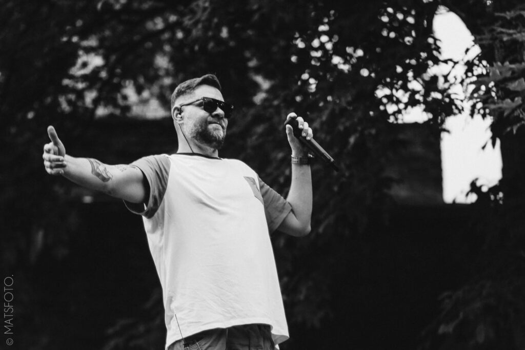 Mężczyzna śpiewający na koncercie na zewnątrz