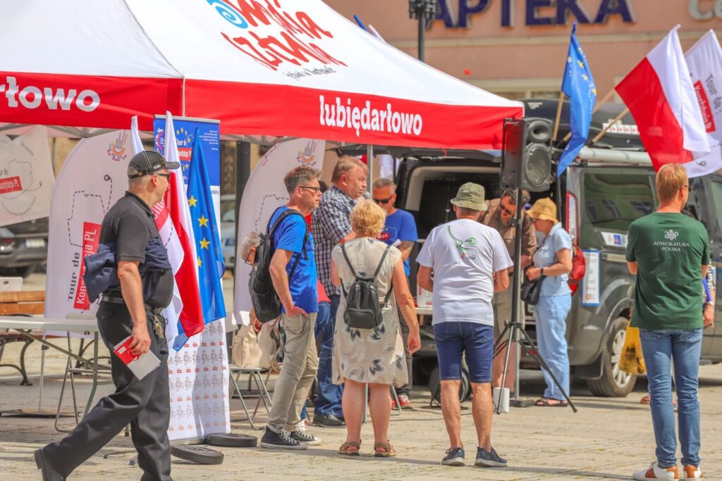 Fantastyczna, uśmiechnięta atmosfera, ale i dostrzegalna gołym okiem troska o nasz kraj, towarzyszyła spotkaniu, na darłowskim rynku w ramach tegorocznej edycji II Tour de Konstytucja. Jak mówili organizatorzy: -te nieco mniejsze przystanki mają to coś – ten swój szczególny i niepowtarzalny rodzinny klimat.