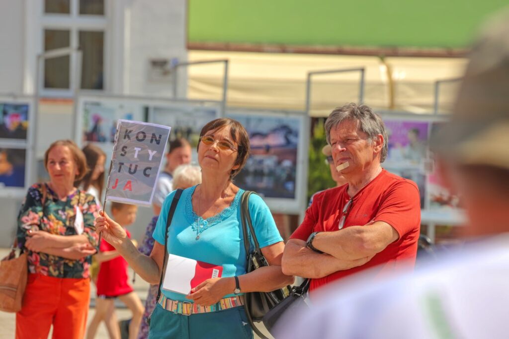 Ludzie na publicznym zgromadzeniu w polskim mieście