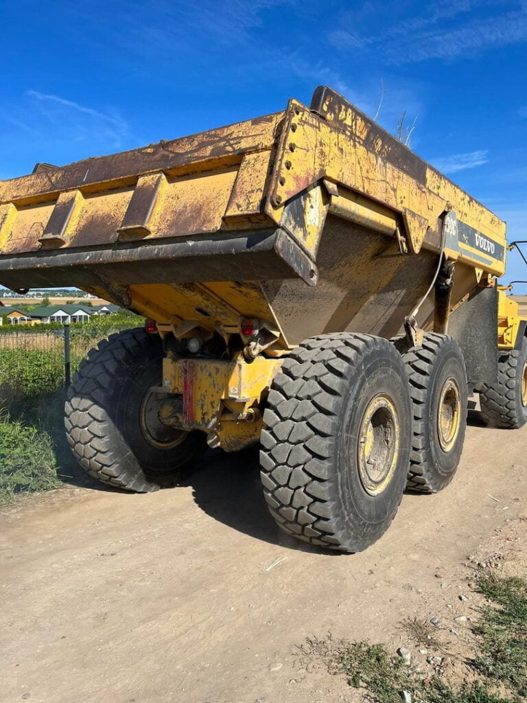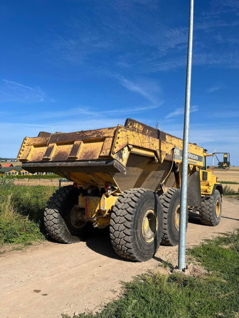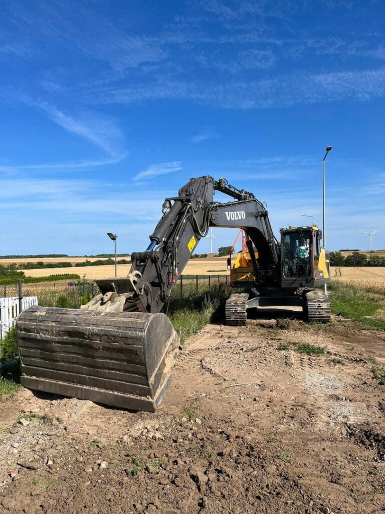 Koparka Volvo pracująca na polu w słoneczny dzień