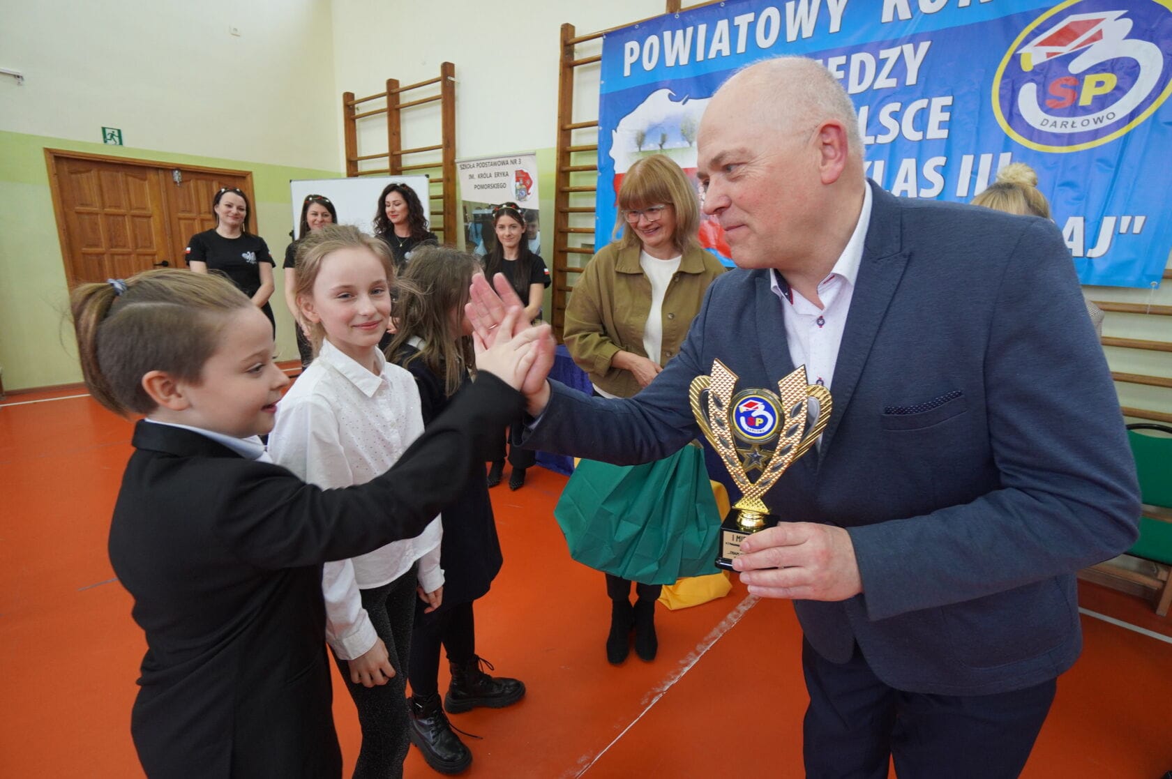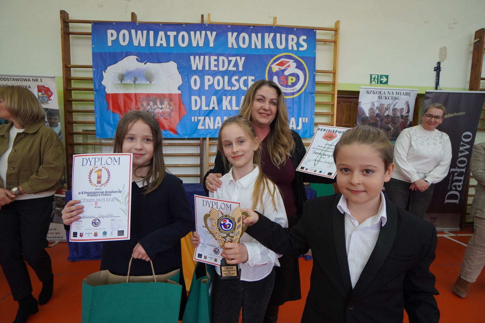 26 marca 2025 roku w Szkole Podstawowej nr 3 w Darłowie odbyła się jubileuszowa, dziesiąta edycja Powiatowego Konkursu Wiedzy o Polsce pt. „Znam Swój Kraj”. Wydarzenie objęli honorowym patronatem Starosta Sławieński – Pan Wojciech Wiśniowski oraz Burmistrz Miasta Darłowo – Pan Arkadiusz Klimowicz. Konkurs skierowany był do uczniów klas trzecich z powiatu sławieńskiego, którzy mieli okazję sprawdzić swoją wiedzę o Polsce i umiejętność pracy w zespole.