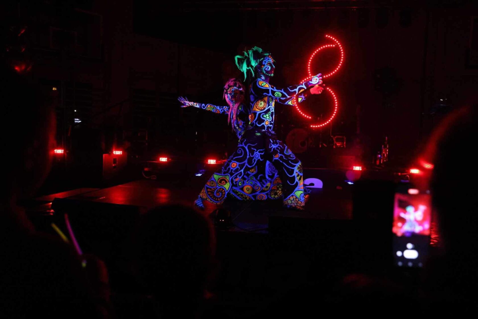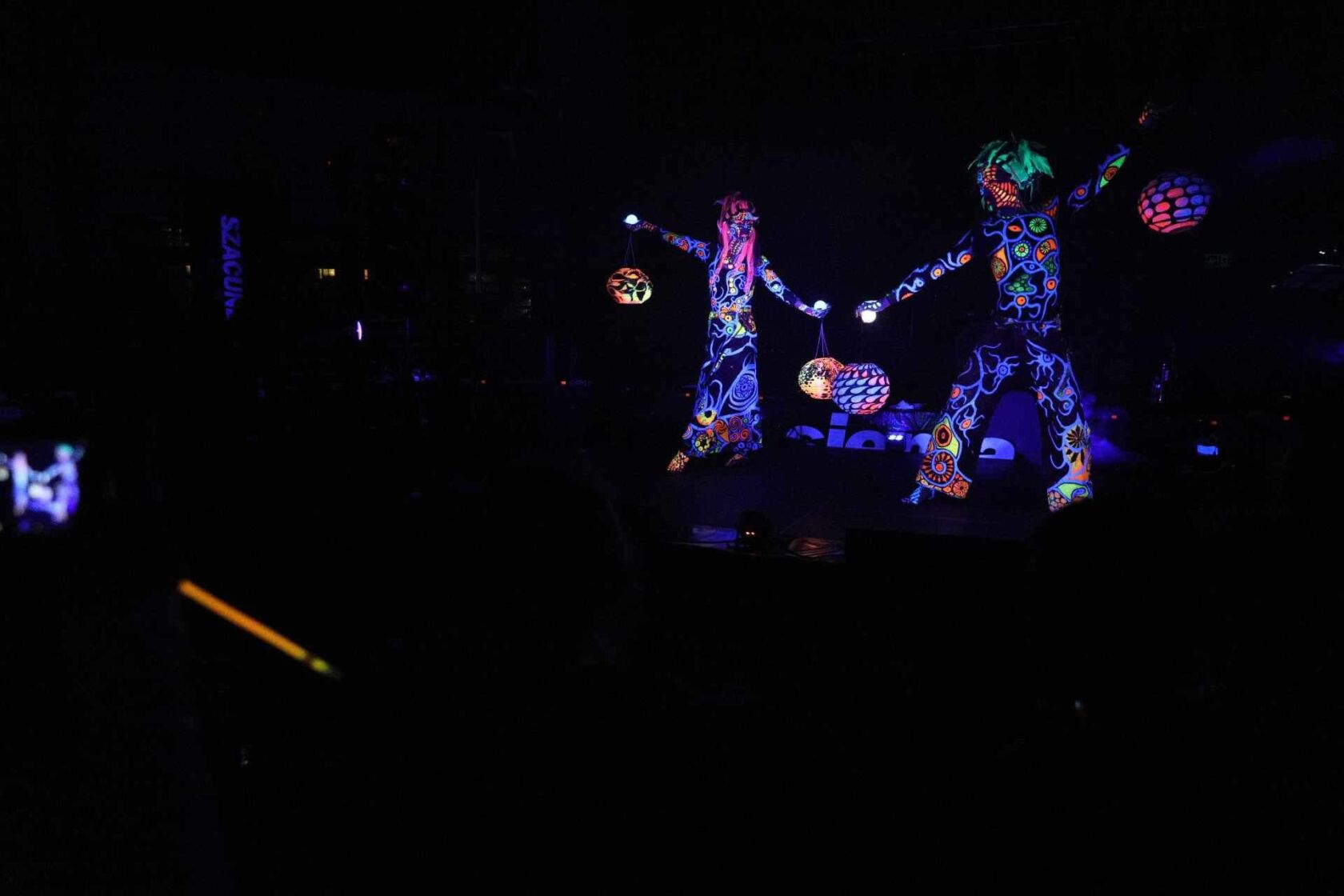 Nie żałowali ci, którzy dotrwali do końca wieczoru. Pokaz grupy Los Fuegos był niespodzianką organizatorów w ramach tradycyjnego „światełka do nieba”. Widowisko, które pokazali artyści, robiło wrażenie. Misterne, barwne wzory malowane na ciałach, zmieniające się rekwizyty (wachlarze, skrzydła, pompony, wstęgi, piłki, obręcze), taniec, żonglerka, akrobacje – wszystko to, w połączeniu z grą świateł i muzyką – tworzyło magiczne obrazy.