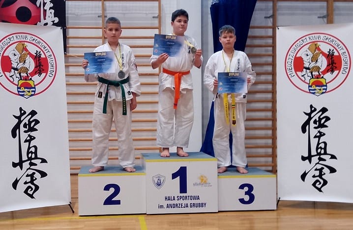 Znakomity start, przygotowanie i formę zaprezentowali wszyscy zawodnicy Ashihara Karate z Darłowa zdobywając trzy medale w walkach sportowych karate. W mocno obsadzonej konkurencji chłopców 9-10 lat -30 kg Andrii Pinchuk zajął – 1 miejsca. Jego starszy kolega Kirill Kalinin zajął – 2 miejsce w kategorii wiekowej 11-12 lat +45 kg , a Yevhen Kvasnytsia – 3 miejsce w tej samej kategorii wiekowej i wagowej. Wszyscy karatecy z Darłowa stoczyli dwie zacięte, wyrównane i wyczerpujące walki zakończone dogrywkami. Był to 12 start zawodników Ashihara Karate z Darłowa w zawodach Polskiej Federacji Kyokushin Karate w latach 2004-2025.