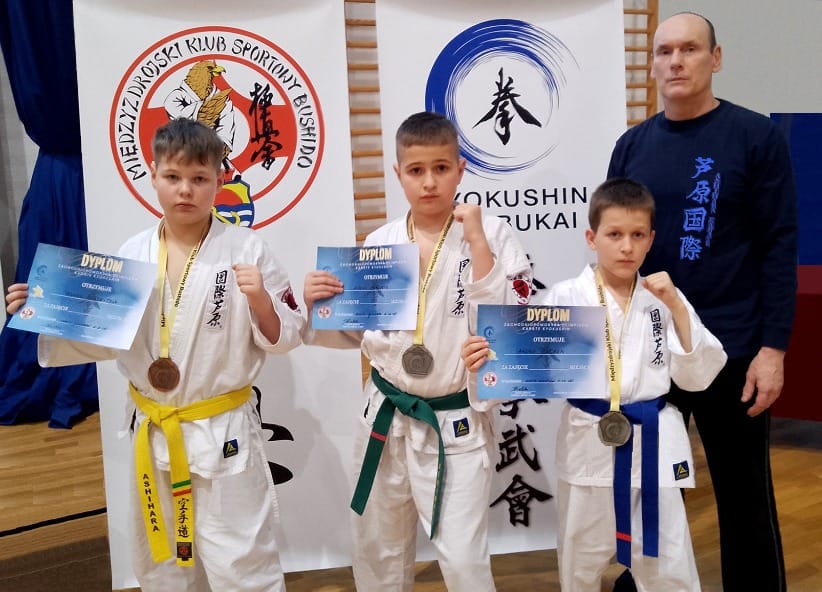 Znakomity start, przygotowanie i formę zaprezentowali wszyscy zawodnicy Ashihara Karate z Darłowa zdobywając trzy medale w walkach sportowych karate. W mocno obsadzonej konkurencji chłopców 9-10 lat -30 kg Andrii Pinchuk zajął – 1 miejsca. Jego starszy kolega Kirill Kalinin zajął – 2 miejsce w kategorii wiekowej 11-12 lat +45 kg , a Yevhen Kvasnytsia – 3 miejsce w tej samej kategorii wiekowej i wagowej. Wszyscy karatecy z Darłowa stoczyli dwie zacięte, wyrównane i wyczerpujące walki zakończone dogrywkami. Był to 12 start zawodników Ashihara Karate z Darłowa w zawodach Polskiej Federacji Kyokushin Karate w latach 2004-2025.