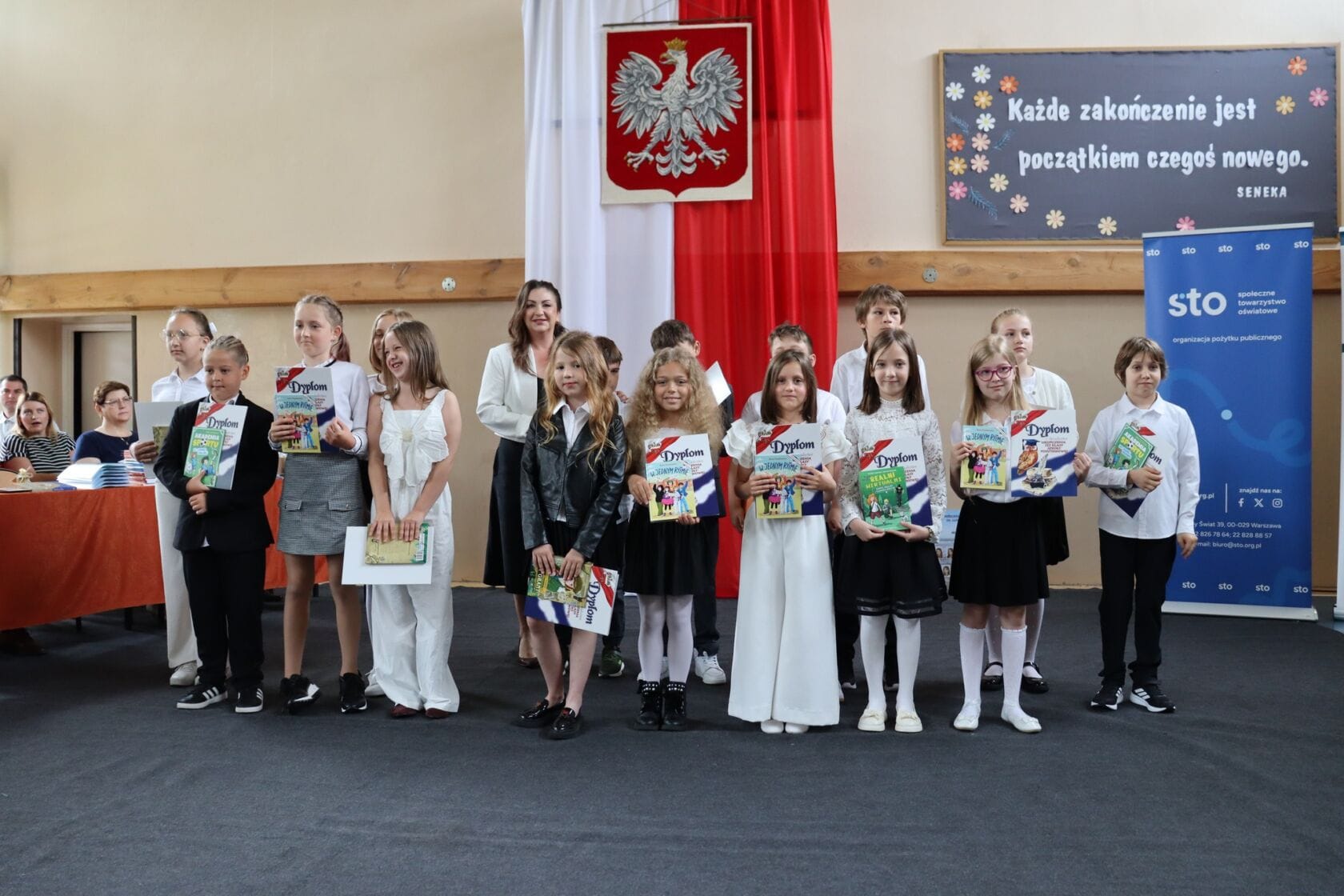 Tegorocznych 22 absolwentów klas ósmych pożegnano z wielką dumą – aż 11 z nich uzyskało świadectwo z wyróżnieniem. Wyróżniono także uczniów młodszych klas – m.in. tytuł Prymusa otrzymali Aurelia Walczyk (kl. III) i Franciszek Jakubowski (kl. VIII).
