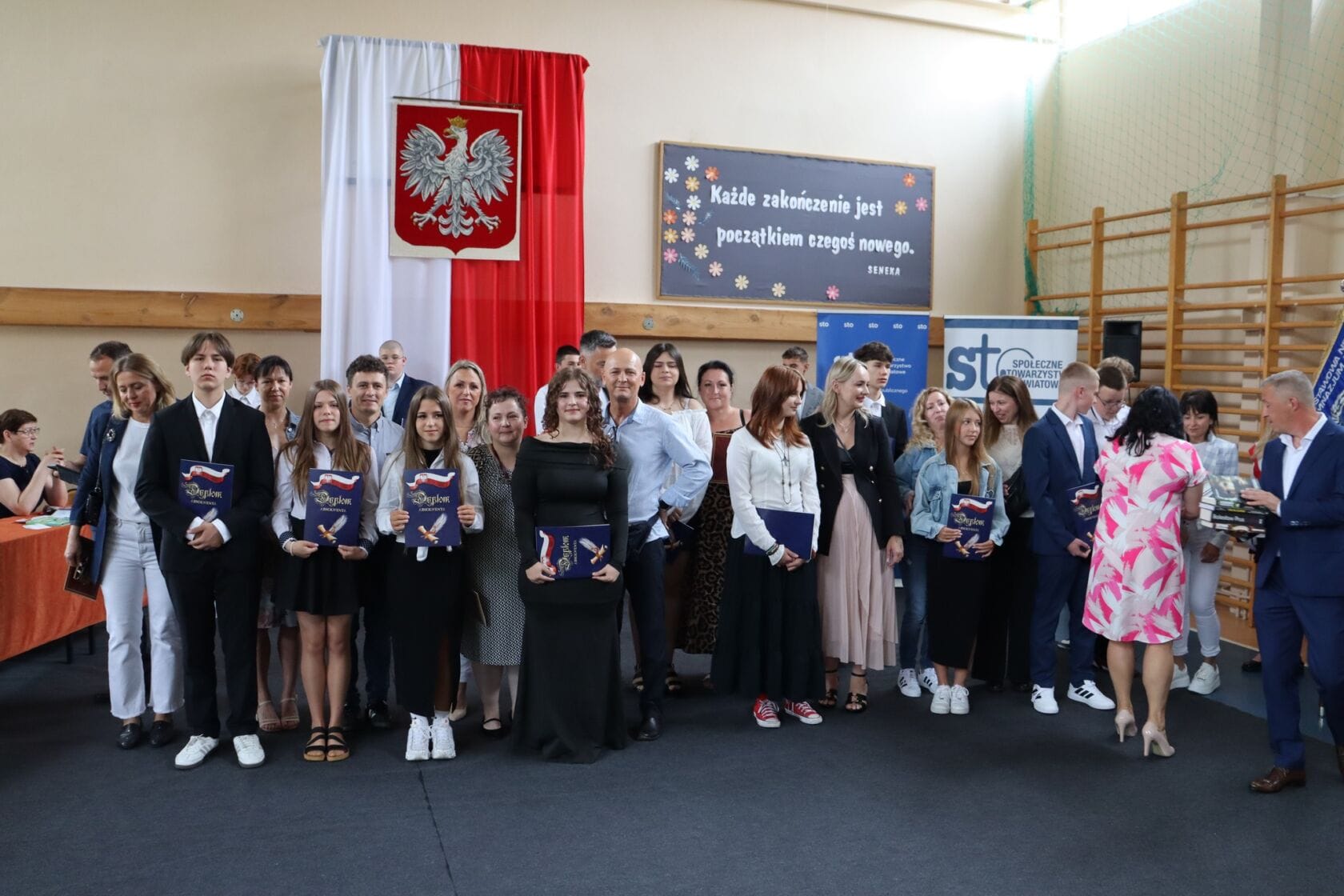 Podczas uroczystości kończącej rok szkolny, społeczność szkolna podsumowała miesiące intensywnej nauki, zaangażowania i licznych sukcesów. Wyróżniono uczniów za osiągnięcia naukowe, sportowe oraz działalność na rzecz szkoły – m.in. w Kompanii Honorowej czy zespole ds. promocji. Szczególne słowa uznania i gratulacje popłynęły do absolwentów szkoły branżowej.