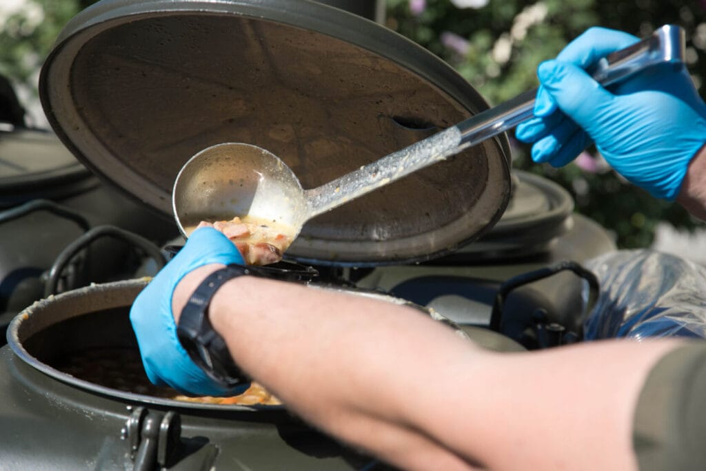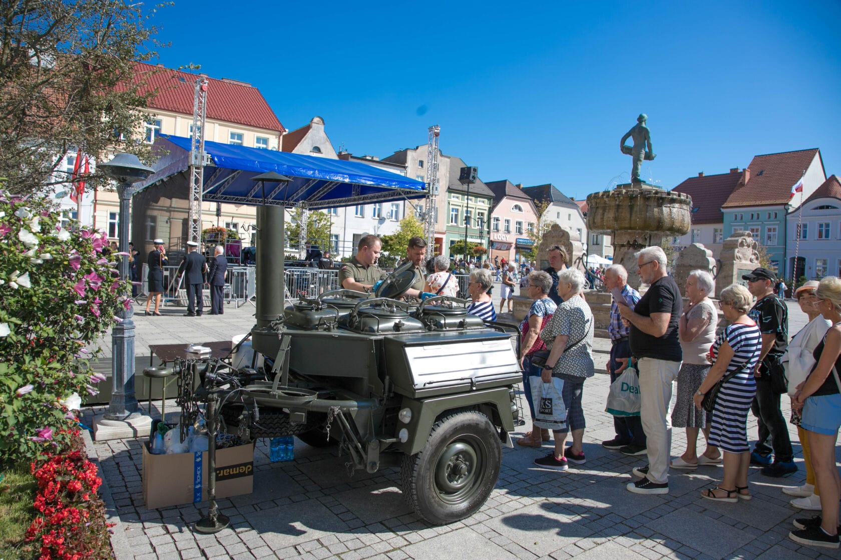Nie mogło zabraknąć tradycyjnej wojskowej grochówki, która – jak można się było spodziewać – cieszyła się ogromnym powodzeniem. Najlepszym dowodem była długa kolejka do kuchni polowej, która przez całe wydarzenie przyciągała mieszkańców i gości.