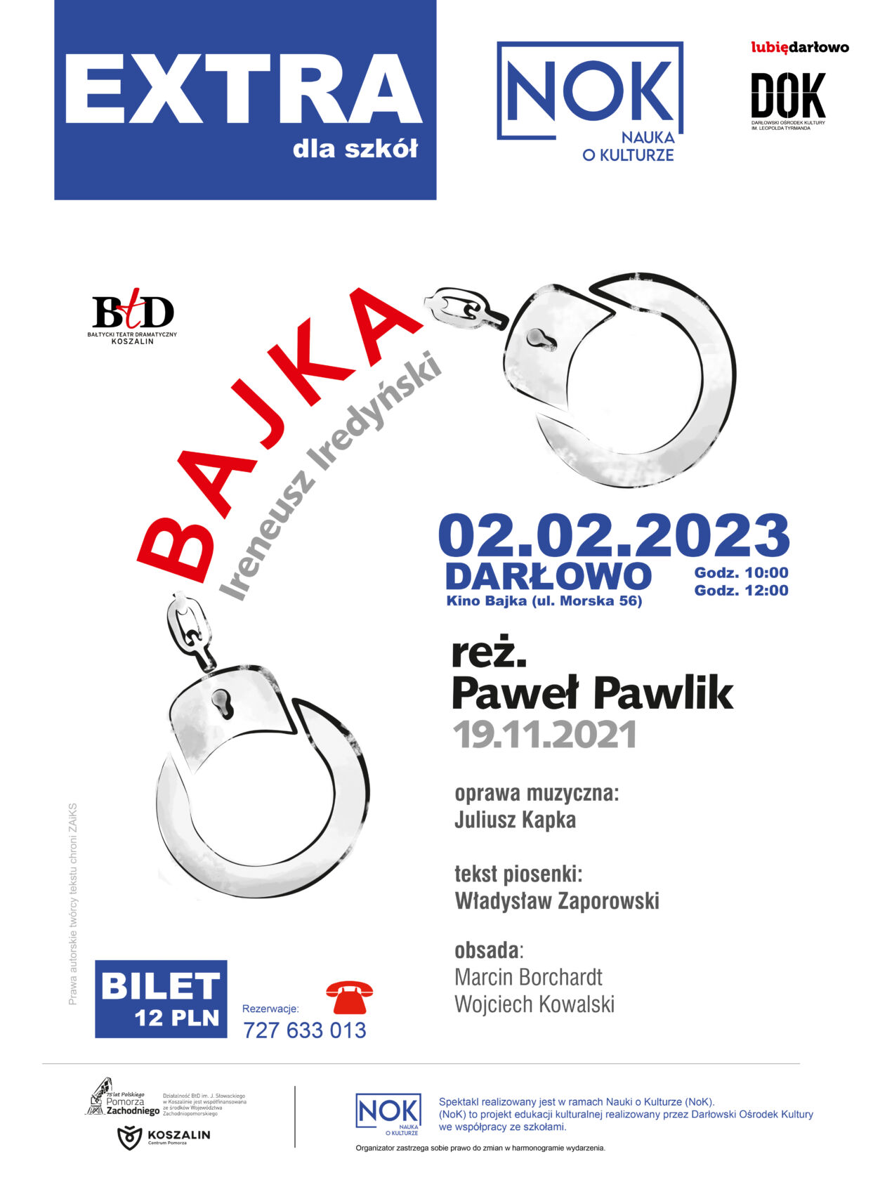 W ramach realizacji projektu Nauka o Kulturze (NoK), 2 lutego 2023 r. dla szkół zostanie zaprezentowany spektakl pt.: „Bajka” – oczywiście w kinie “Bajka”.