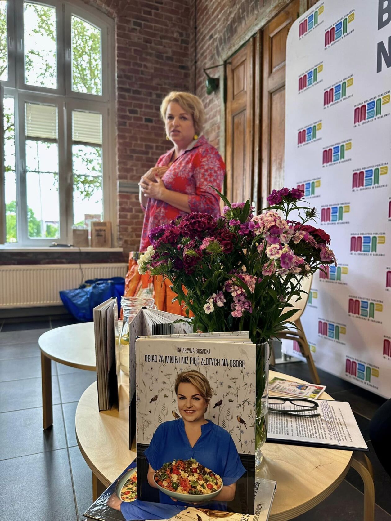 Spotkanie z Katarzyną Bosacką zorganizowano w sobotę. Dziennikarka przyjechała do Darłowa ze swoją najnowszą książką „Obiad za mniej niż 5 złotych na osobę”, w której znajduje się 100 przepisów i z której dowiemy się m.in. jak reanimować kabanosy czy rzodkiewki i co zrobić z końcówkami sera. Uczestnicy spotkania poznali też przepis na placki z czarnego bzu.