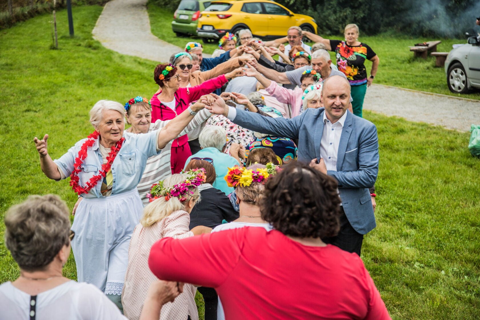 Rozdali go wszystkim uczestnikom, a następnie polonezem rozpoczęli część biesiadną. Trwało to kilka godzin. Przebrania, przyśpiewki, a zwłaszcza wianuszki na skroniach seniorek budziły szczere wzruszenie. Każdy mógł wziąć udział w licznych, bardzo oryginalnych zawodach.