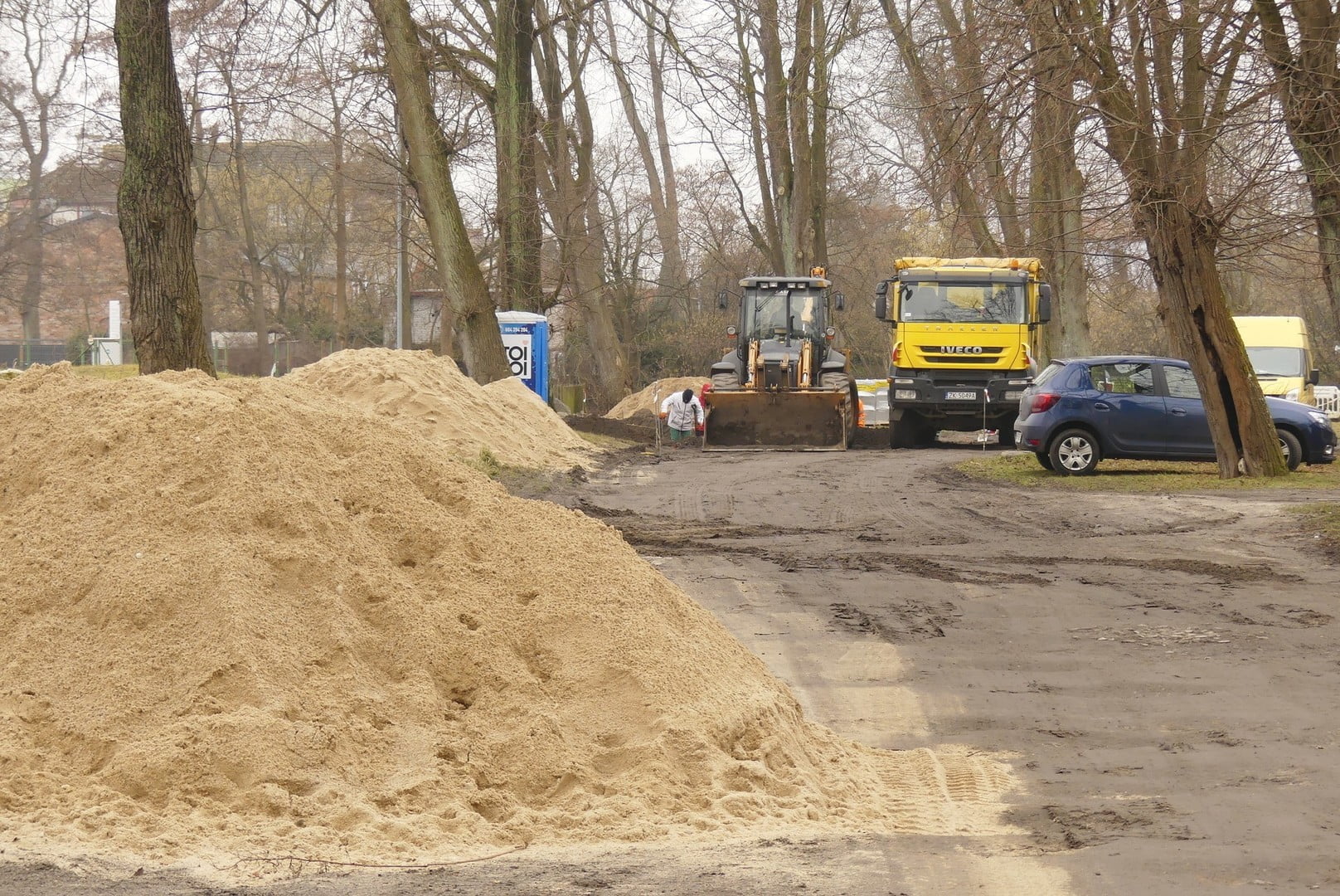 Na teren budowy zwieziono już sporą część materiałów budowlanych i rozpoczęto korytowaniewytyczono ciągu komunikacyjnego.