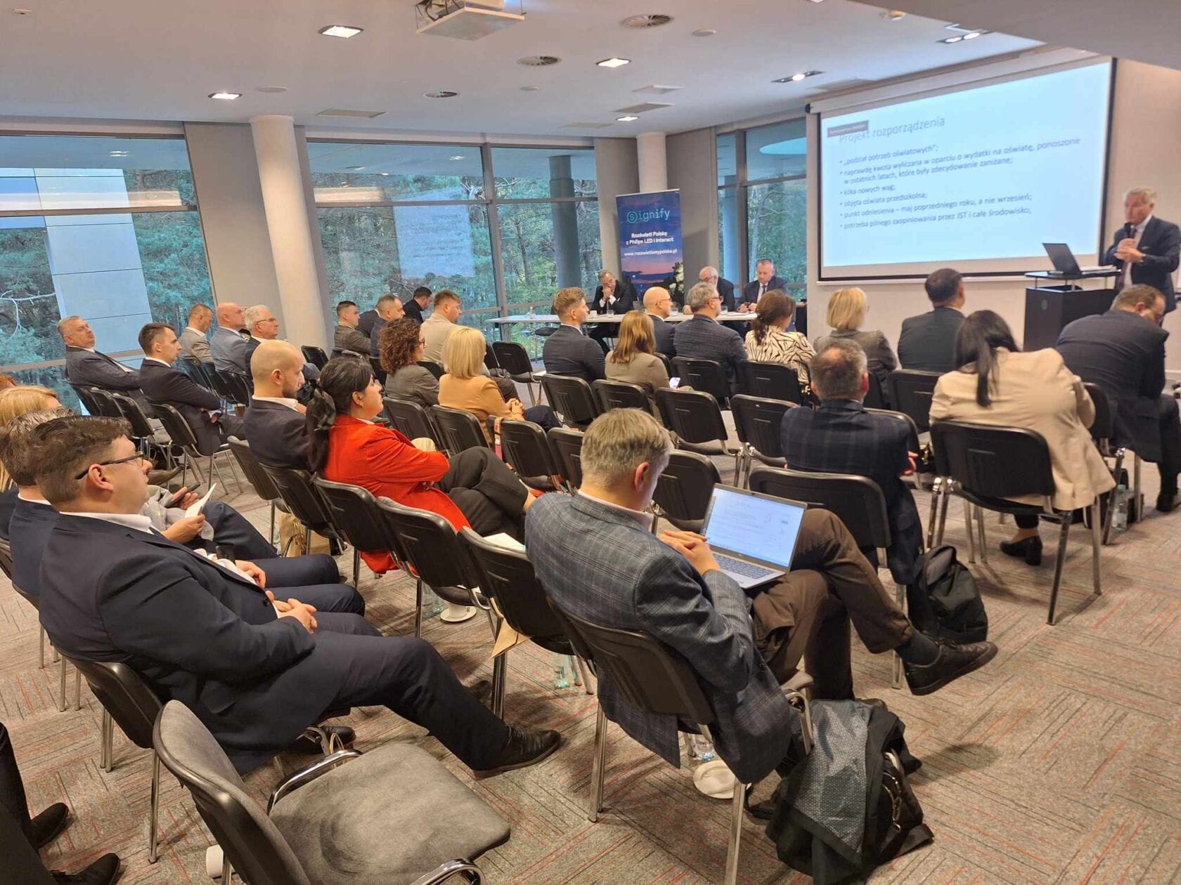 Konferencja biznesowa, prezentacja, widzowie w sali