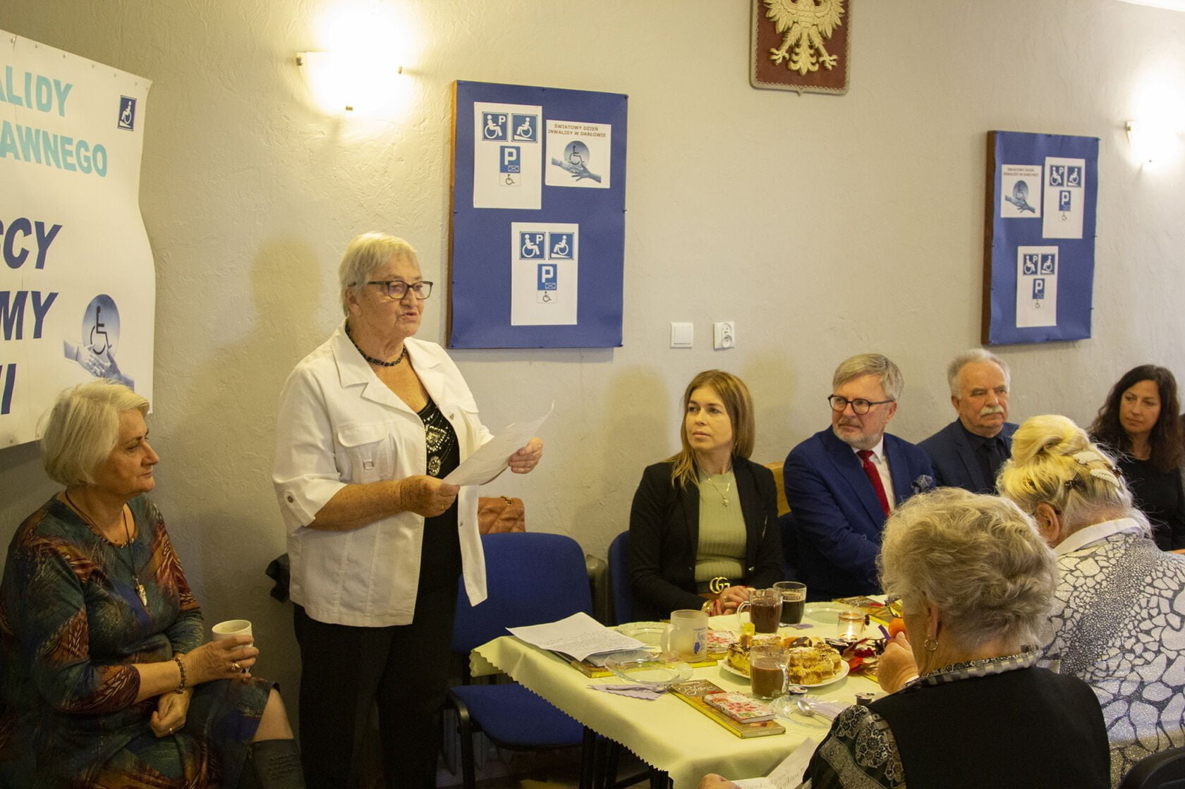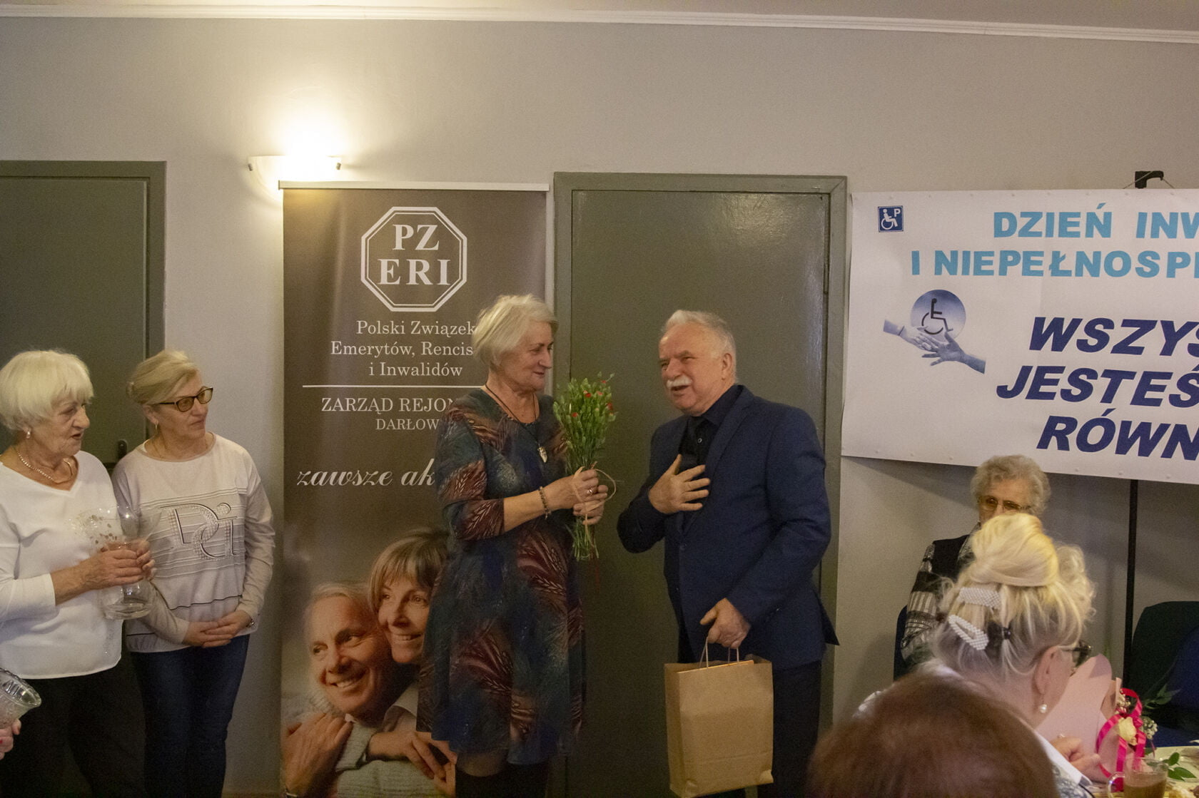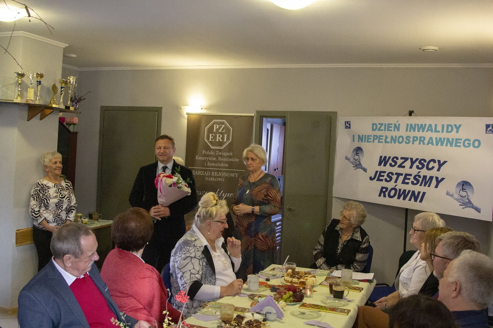 We wtorkowe dopołudnie do siedziby Związku Emerytów, Rencistów i Inwalidów przybyła rzesza 60-ciu emerytów, których wielu jest inwalidami. Wśród gości w spotkaniu wzięli udział Małgorzata Maciuk-Radawiec Dyrektor Powiatowego Centrum Pomocy Rodzinie, Joanna Klimowicz – Prezes Fundacji Morze Miłości, Wojciech Wiśniowski Starosta Powiatu Sławno i Arkadiusz Klimowicz – Burmistrz Miasta Darłowo, Waldemar Wieczorek kierownik Miejskiego Ośrodka Pomocy Społecznej. Spotkanie odbyło się w ramach realizacji zadania społecznego Niepełnosprawni- różne potrzeby, równe prawa finansowanego przez Miasto Darłowo. Wszyscy goście życzyli nestorom zdrowia, a w kolejnych spotkaniach w mniejszych zespołach będą pracować psycholodzy, terapeuci i trenerzy interdyscyplinarni.