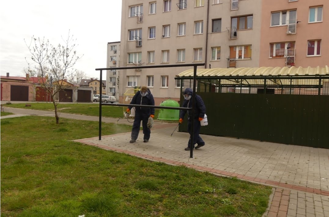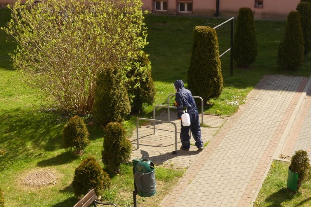 Rozpoczęła się dezynfekcja spółdzielczych terenów w Darłowie. Dezynfekcja polega na skrapianiu elementów środkiem odkażającym terenów należących do Spółdzielni Mieszkaniowej ?Bałtyk? w Darłowie za pomocą specjalnego środka na bazie wysokoprocentowego alkoholu. W ramach walki z koronawirusem służby spółdzielcze dezynfekują te obiekty, z którymi mieszkańcy mogą mieć bezpośredni kontakt. To m.in. poręcze przy schodach, śmietniki, trzepaki, ławki, kosze na śmieci. To dobry przykład również dla innych.