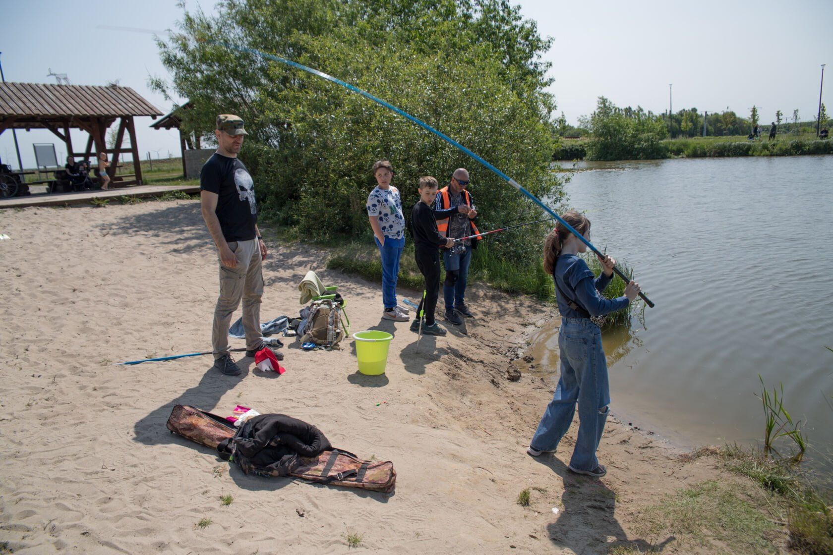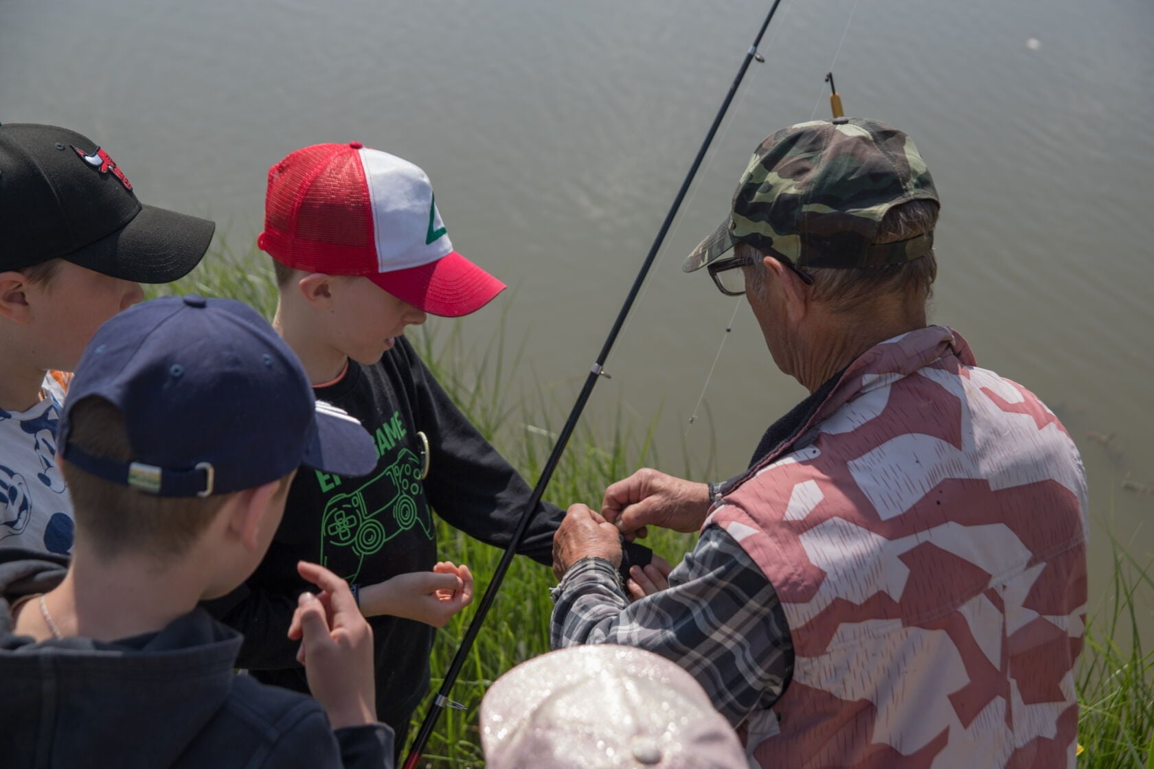 Doświadczeni wędkarze: Piotr Ebel i Antoni Hołub dzielili się swoją wiedzą i umiejętnościami, tłumacząc młodym entuzjastom, jak prawidłowo dobierać sprzęt, jak znać i rozumieć życie wodne oraz jak bezpiecznie i odpowiedzialnie korzystać z naturalnych zasobów.