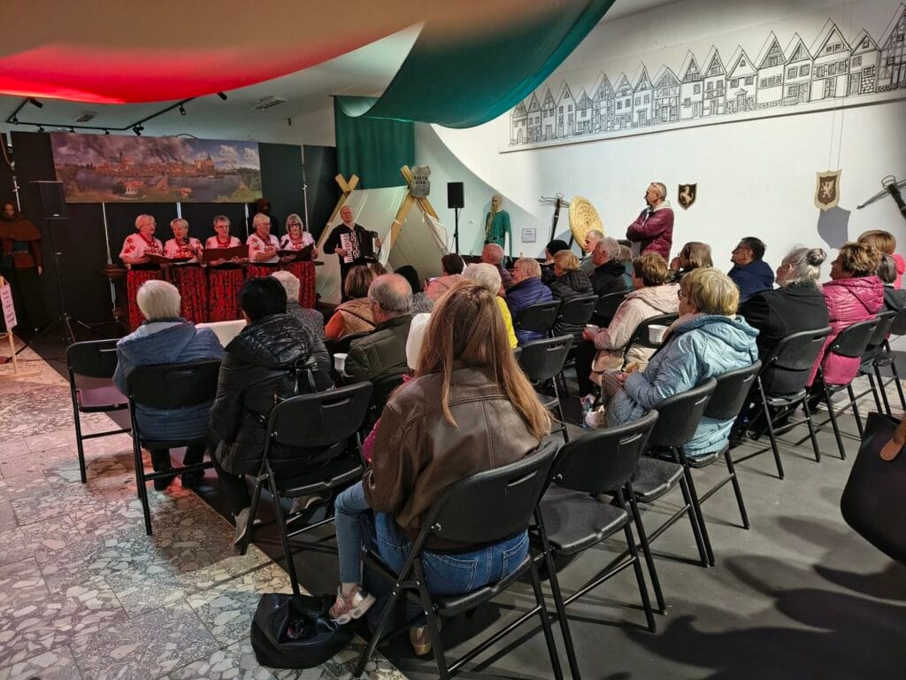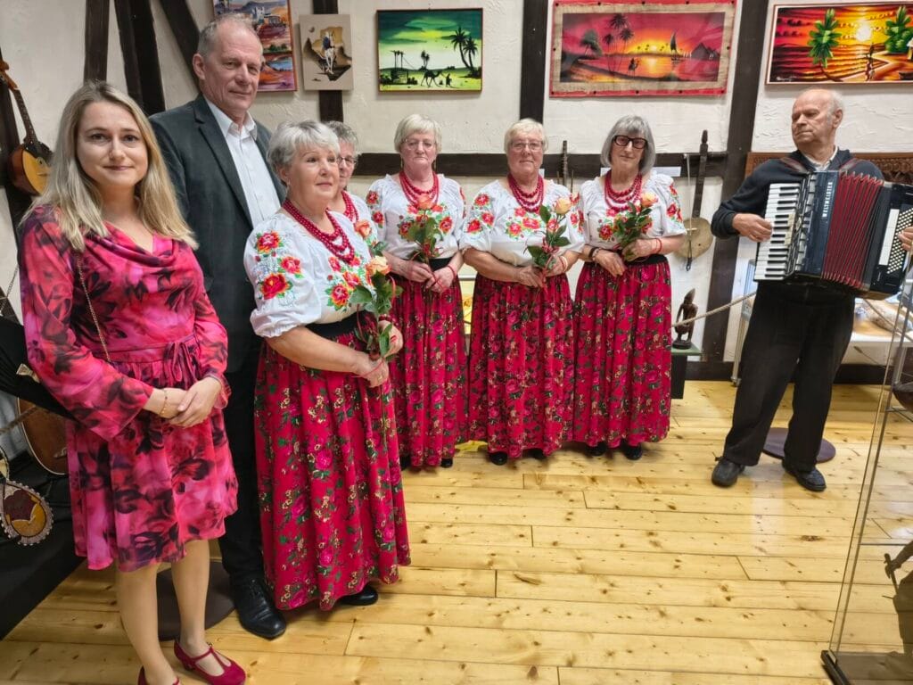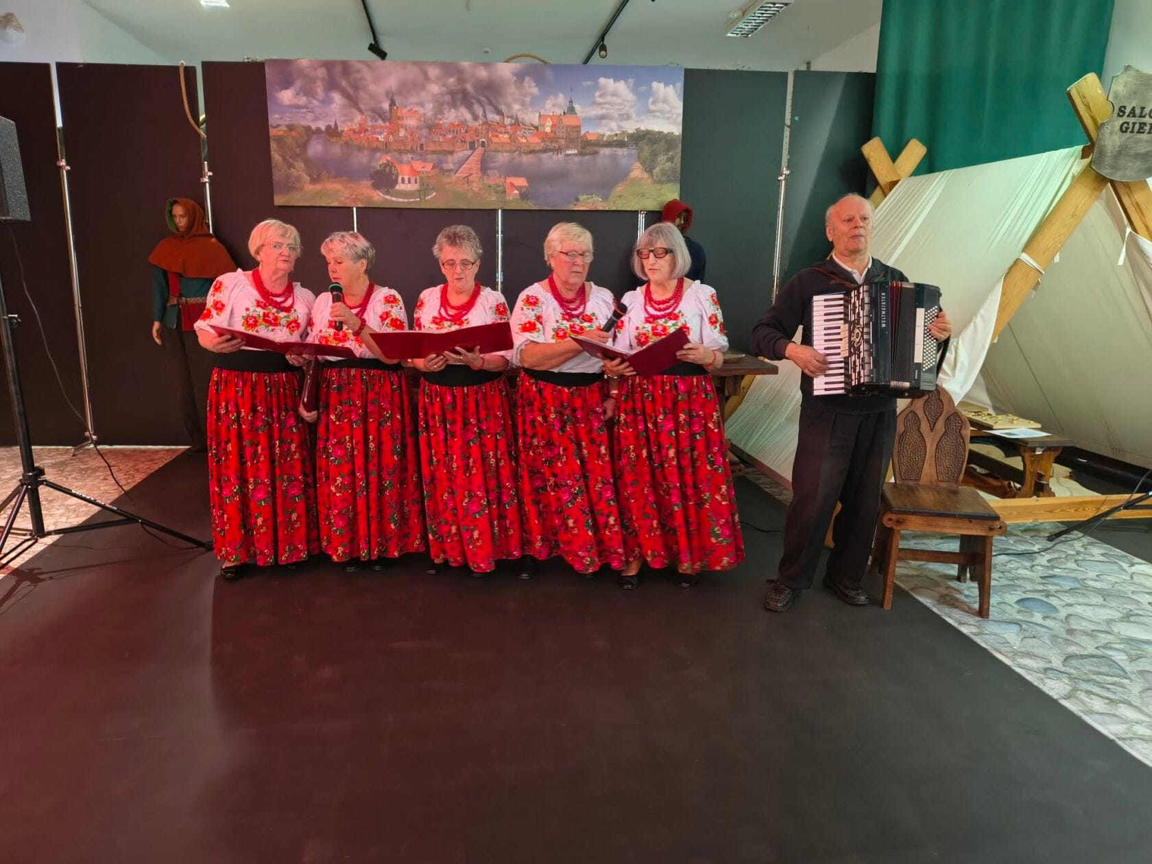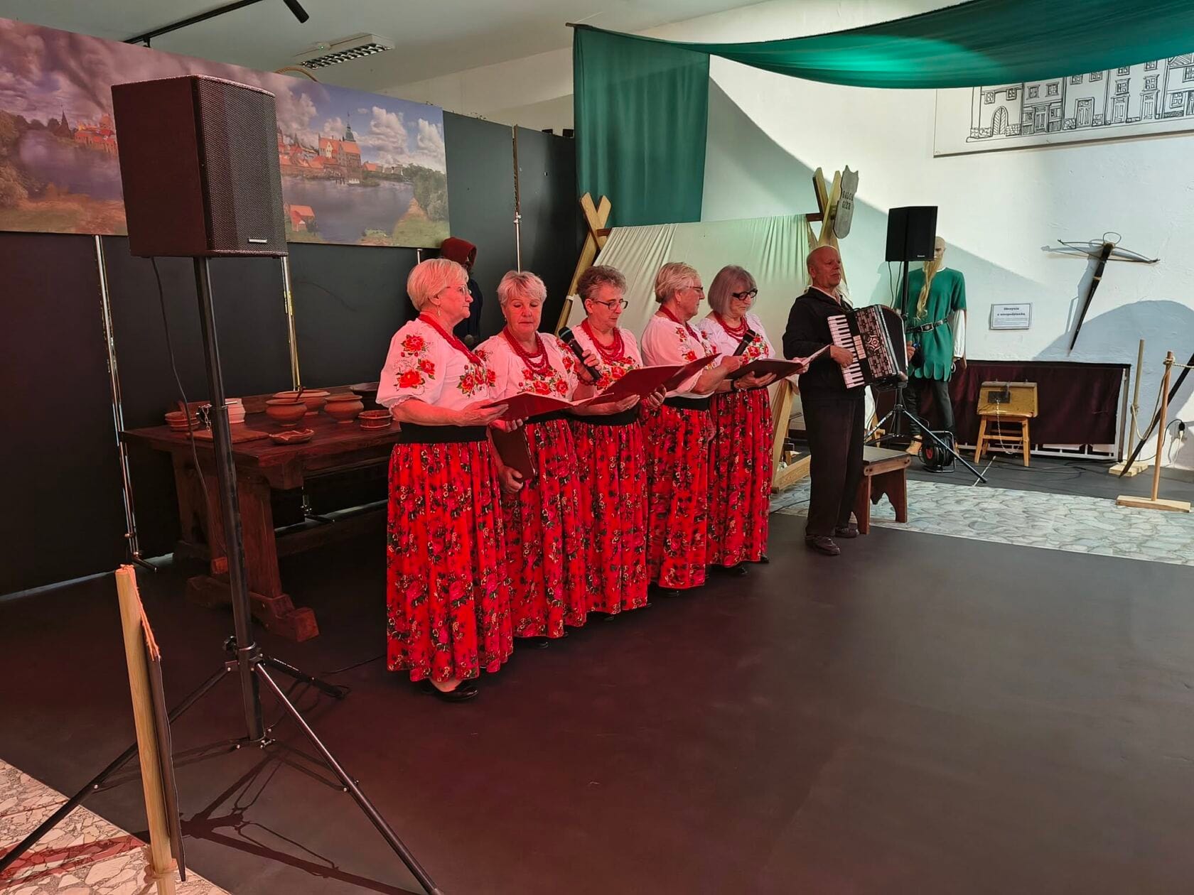 Następnie specjalnie dla Państwa wystąpił zespół “Marzenie” z Jeżyc; w pięknych strojach ludowych, przy wesołych dźwiękach akordeonu, panie zaśpiewały znane i lubiane utwory.