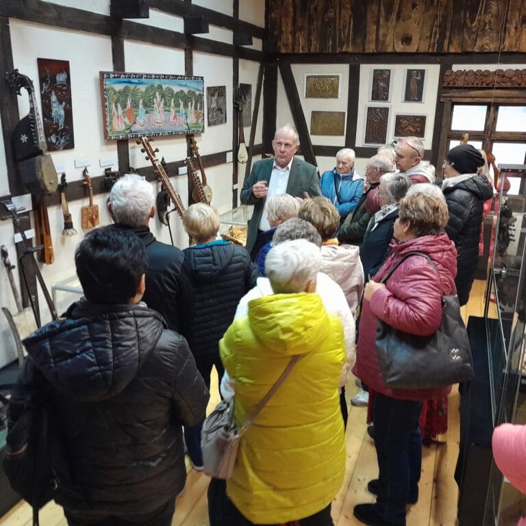 Dan Thran, Sarinda, Banhu, Ruan… Nie, to nie zaklęcia, lecz nazwy niektórych instrumentów spośród bogatego zbioru prezentowanego na wystawie “Instrumenty i sztuka etniczna świata”, z kolekcji państwa Violetty i Leszka Dylik. Dzisiaj seniorzy, którzy przybyli do naszego zamku, mieli wyjątkową okazję wysłuchania prelekcji pana Leszka, okraszonej licznymi ciekawostkami i humorem.