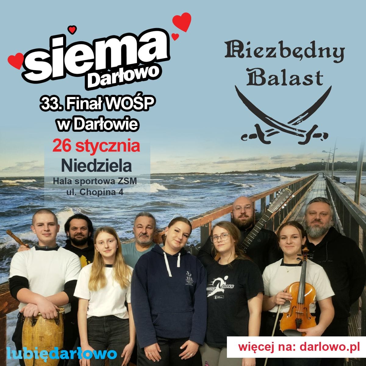 W imieniu Miasta Darłowo, Darłowskiego Ośrodka Kultury, Miejskiej Biblioteki Publicznej im. Agnieszki Osieckiej, DCW oraz darłowskich sztabów zapraszamy na koncertowy finał do hali sportowej przy Zespole Szkół Morskich w Darłowie (dawne liceum – ul. Chopina 4). Ponownie łączymy siły i stawiamy na jeszcze więcej muzycznych doznań, które umilą nam ten niezwykły, pełen energii dzień.