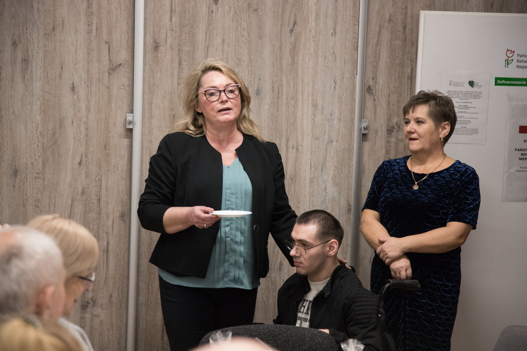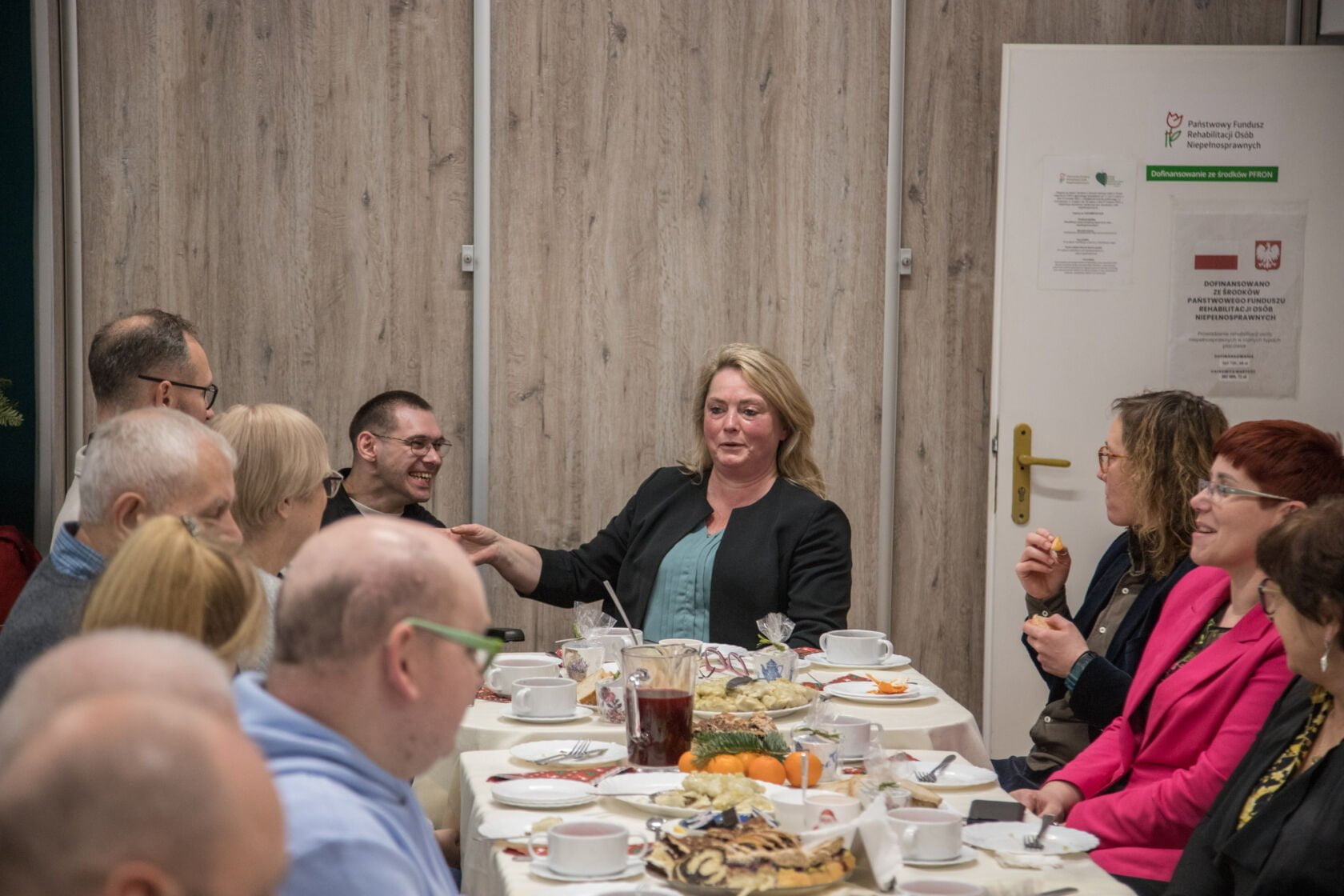 W świąteczny nastrój wprowadziły kolędami podopieczni ośrodka, w śpiew których włączyli się wszyscy obecni. Serdeczne życzenia złożyła Pani prezes Stowarzyszenia Osób Niepełnosprawnych Marzena Górzyńska oraz Arkadiusz Klimowicz i Wojciech Wiśniowski. Podzielono się symbolicznym opłatkiem oraz częstowano gości tradycyjnymi wigilijnymi potrawami. O najmłodszych pamiętał św. Mikołaj, który przekazał im słodkie paczki. Spotkanie, oprócz wymiaru religijnego, przypomina, że stanowimy jedną, wielką rodzinę, która w trudnych chwilach wspiera się i darzy wzajemnym szacunkiem.
