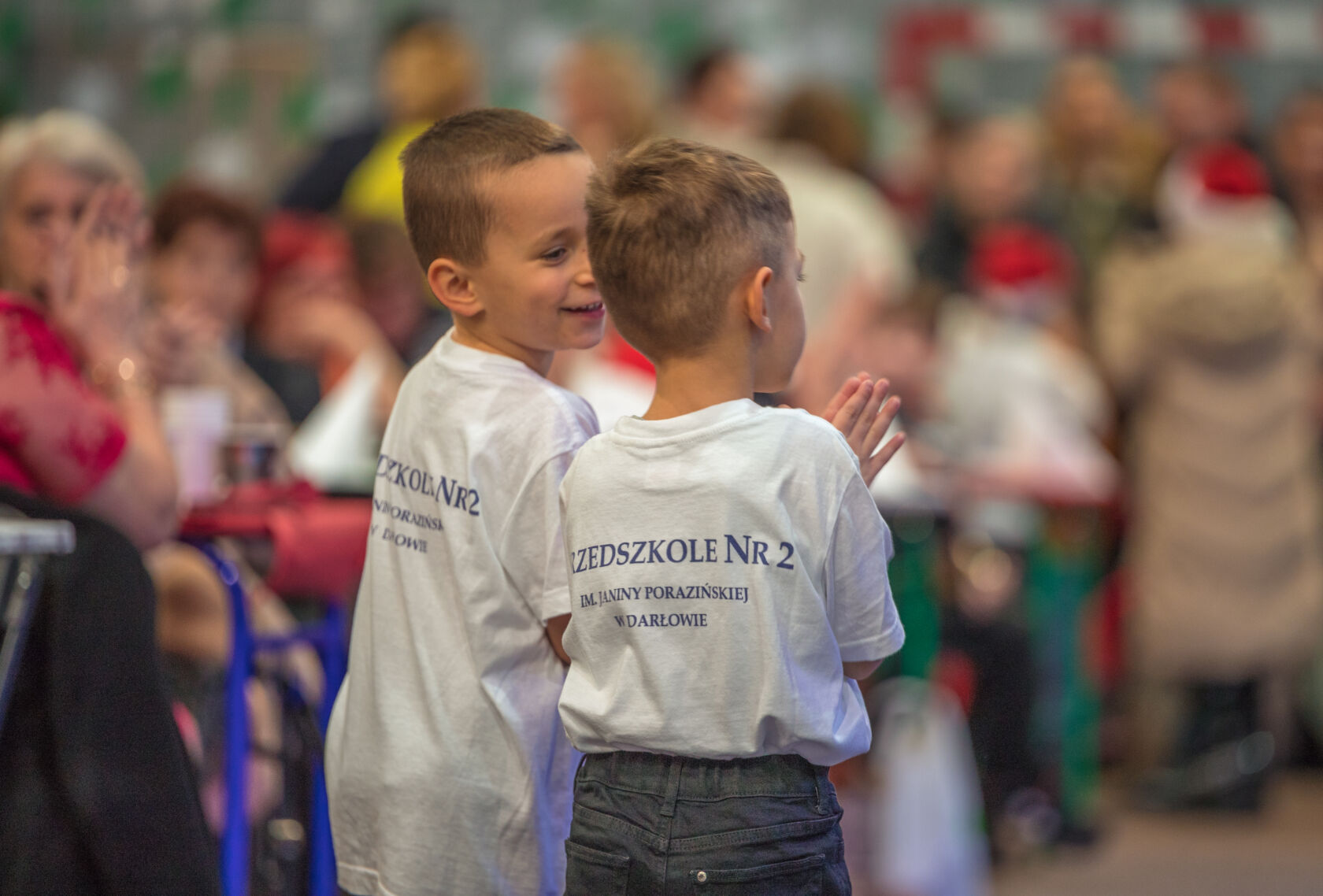 W klimat zbliżających się świąt Bożego Narodzenia wciągały wszystkich artystyczne występy. Na scenie zaprezentowały się przedszkolaki z Przedszkola nr 2 oraz Przedszkola Przy Szkole. Na licznie zebranej publiczności wystąpili również uczniowie Szkoły Podstawowej nr 3 im. Króla Eryka Pomorskiego. Nie mogło zabraknąć także rodzimych wybitnych muzyków – Marka Wysockiego i Dariusza Kosa.