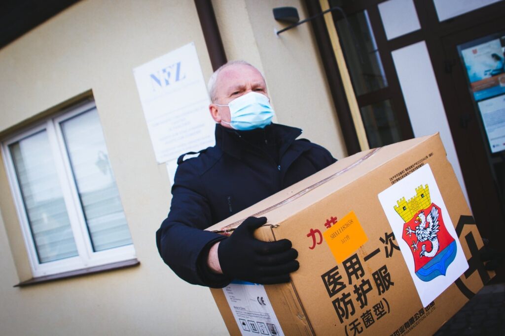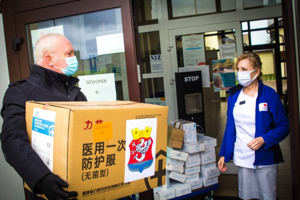 Burmistrz Darłowa Arkadiusz Klimowicz postanowił przekazać część materiałów ochronnych z rezerw miasta na potrzeby Domu Hospicyjno-Opiekuńczego Caritas im. Bp. Czesława Domina w Darłowie. Kombinezony i maseczki ochronne dostarczył Sekretarz Miasta – Tomasz Bobin. Personel nie krył zadowolenia. W tym trudnym czasie pandemii materiały te są niezwykle ważne i w szybkim tempie zostają zużywane.