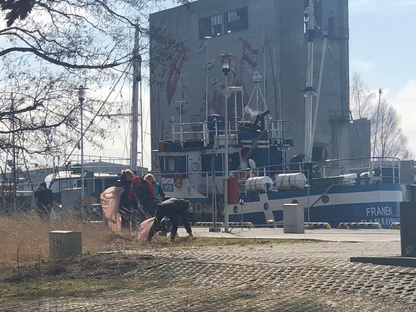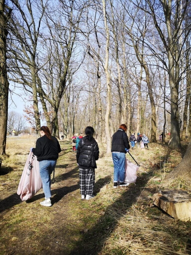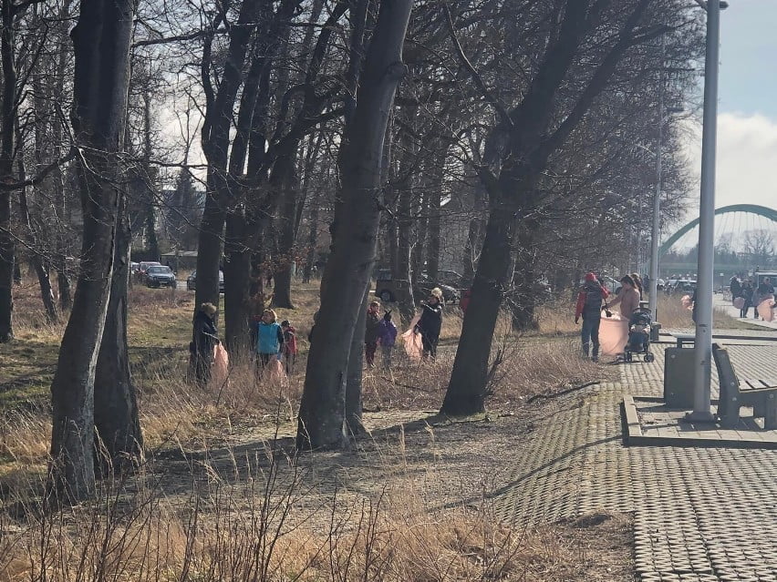 Grupa ludzi na zewnątrz, akcja społecznościowa, wiosna
