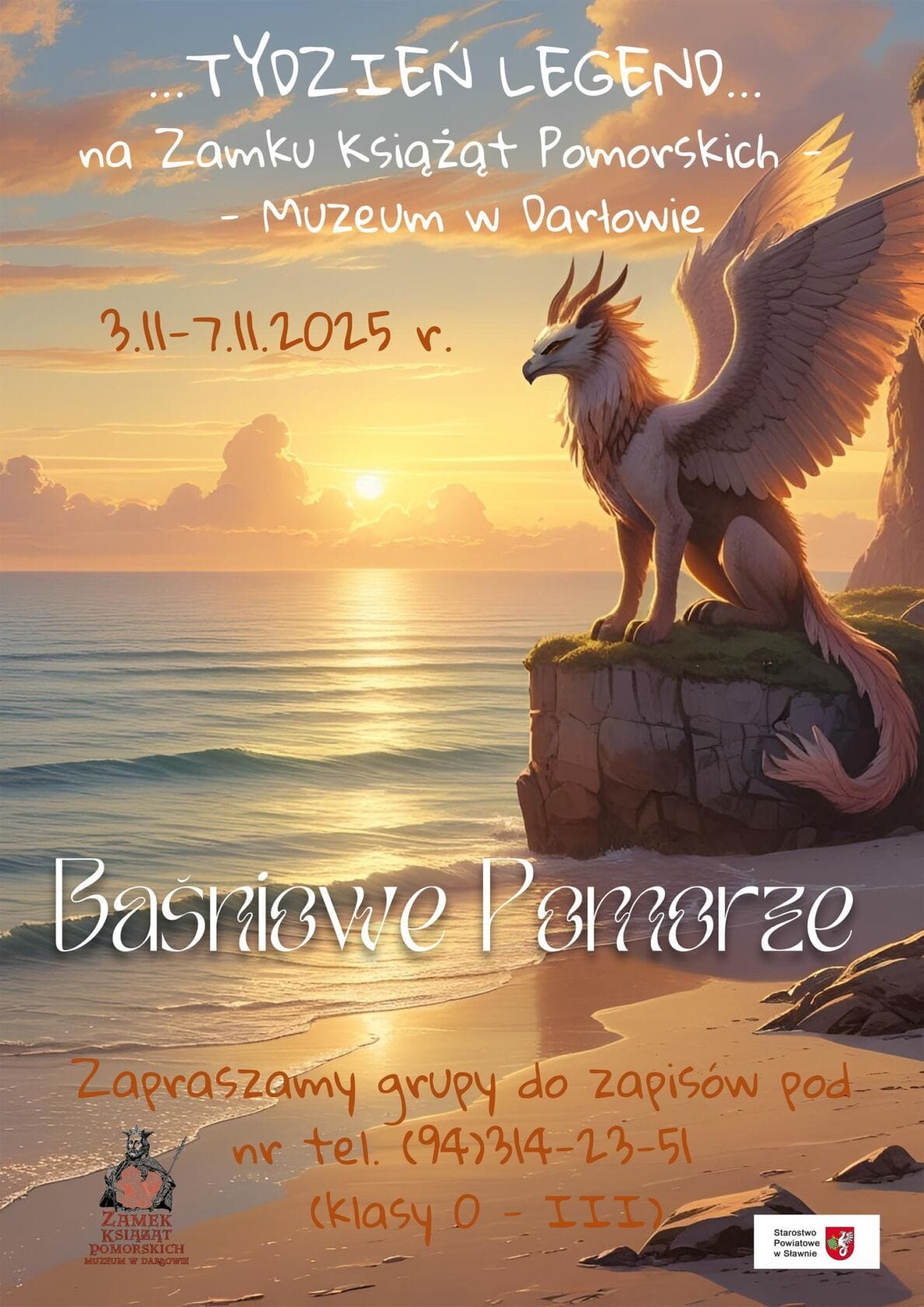 Tydzień Legend na Zamku „Baśniowe Pomorze” będzie odbywał się w terminie 3 – 7.11.2025 r. w godzinach przedpołudniowych.