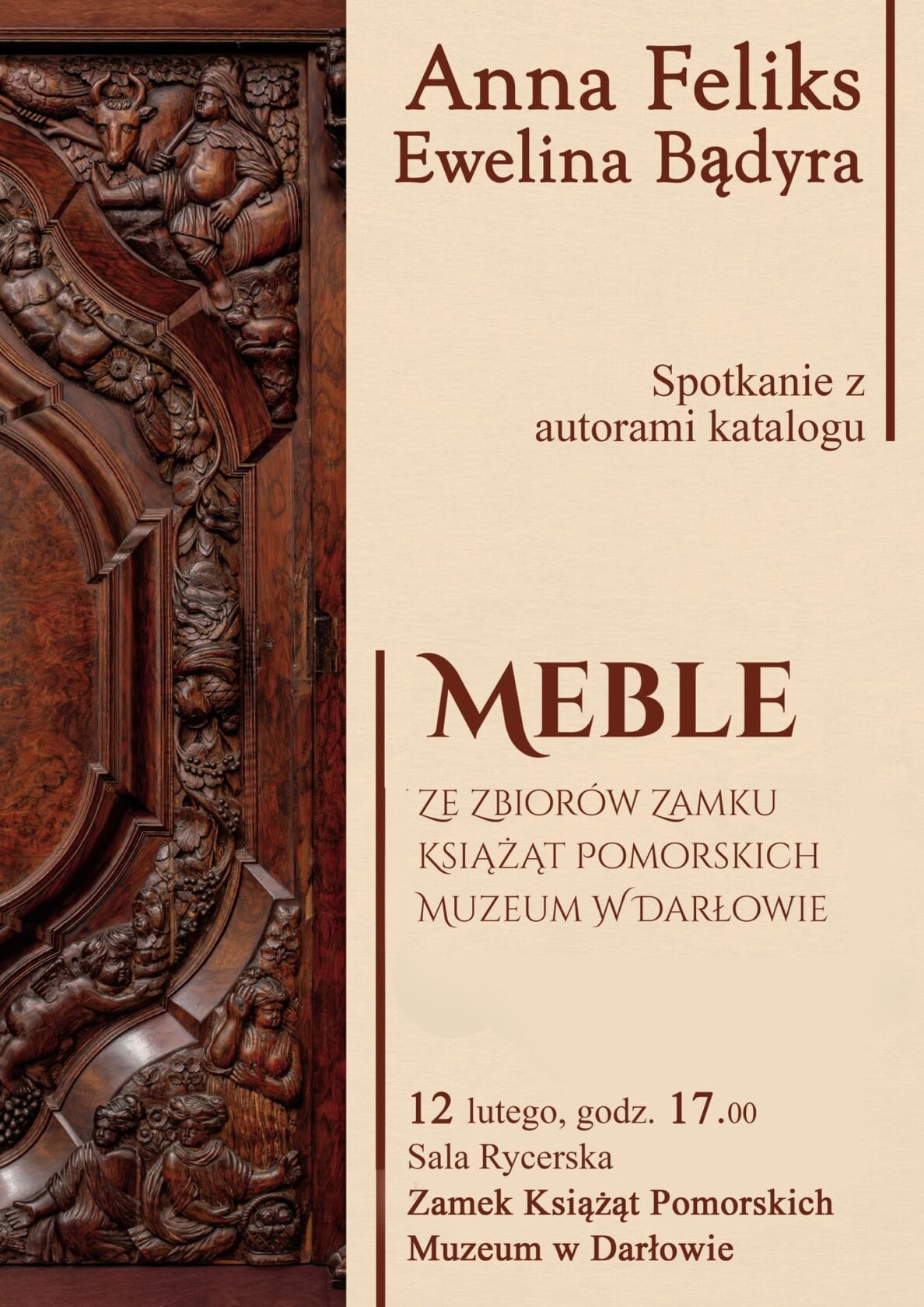Zamek Książąt Pomorskich – Muzeum w Darłowie zaprasza na spotkanie z dr Anną Feliks, Eweliną Bądyrą, autorkami katalogu „Meble ze zbiorów Zamku Książąt Pomorskich – Muzeum w Darłowie”,
