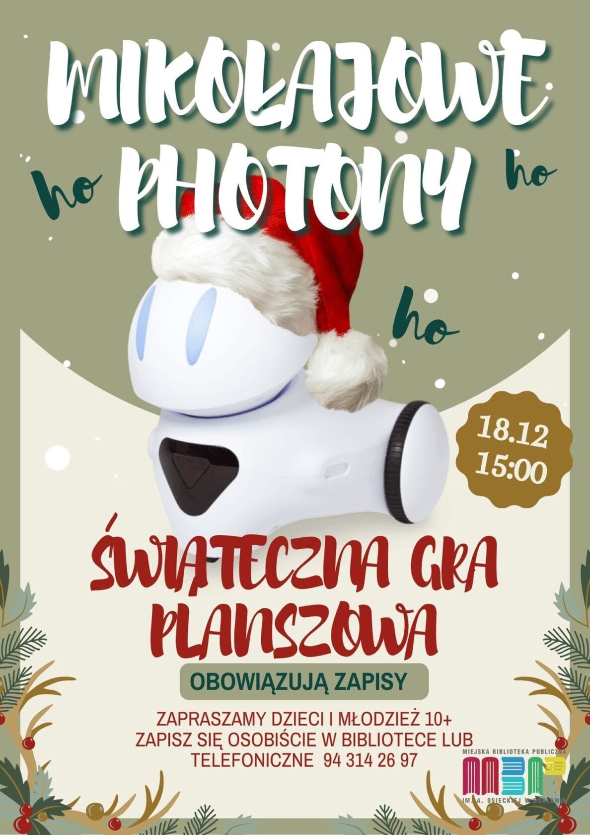 Miejska Biblioteka Publiczna serdecznie zaprasza dzieci i młodzież na świąteczną zabawę z robotami PHOTON.