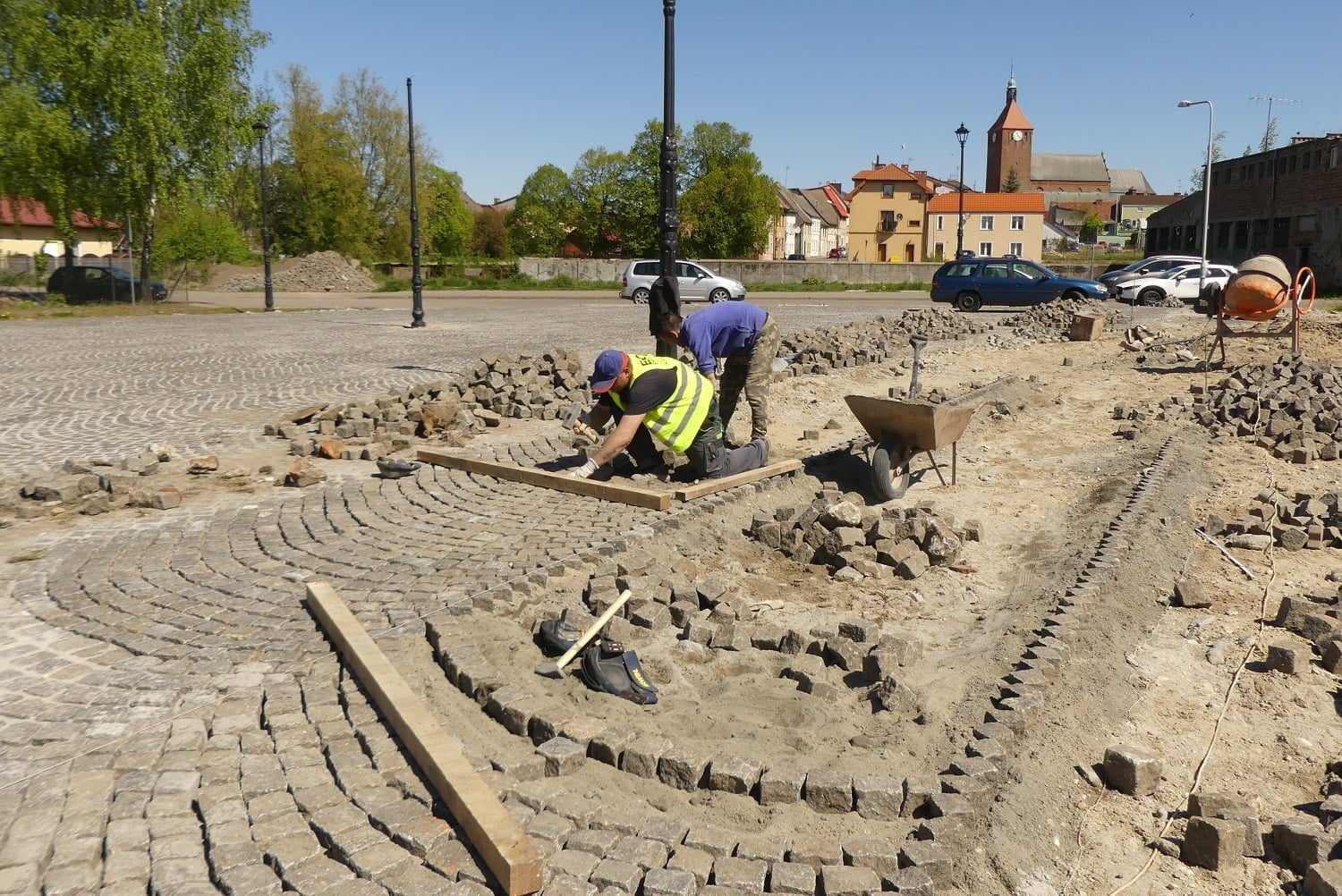 Zmniejszenie rygorów związanych z epidemią korona wirusa umożliwiło nowemu wykonawcy firmie Ecoax z Koszalina wznowienie układania bruku na miejskim targowisku. Wcześniej zostały już wykonane toaleta dostosowana również dla osób niepełnosprawnych, oświetlenie za pomocą stylowych, ale energooszczędnych lamp, parking z odcinkiem drogi oraz kanalizacja sanitarna.