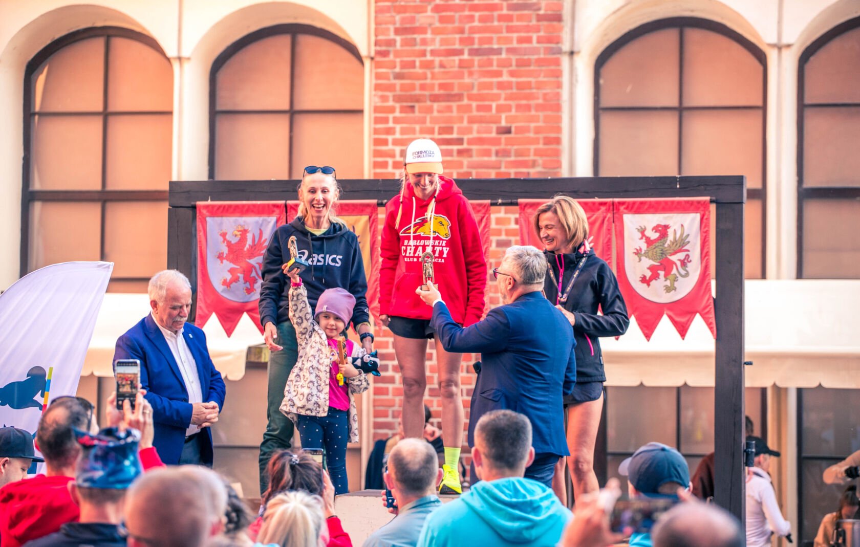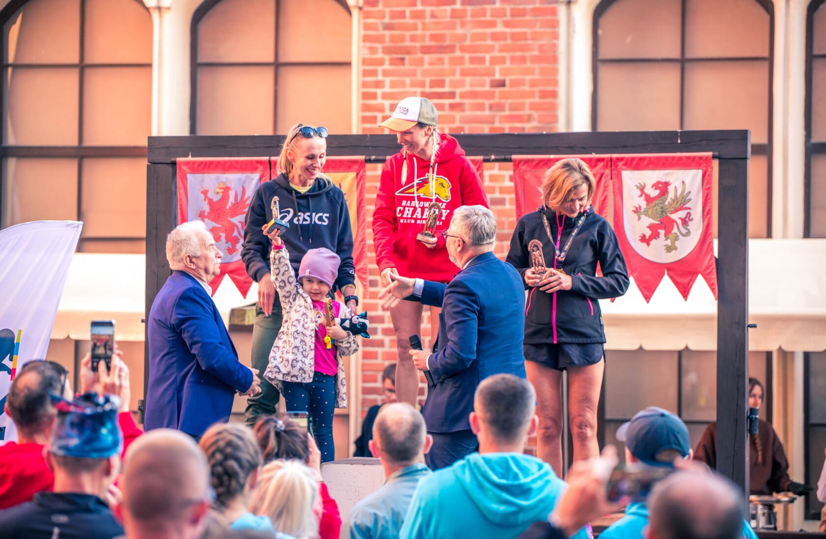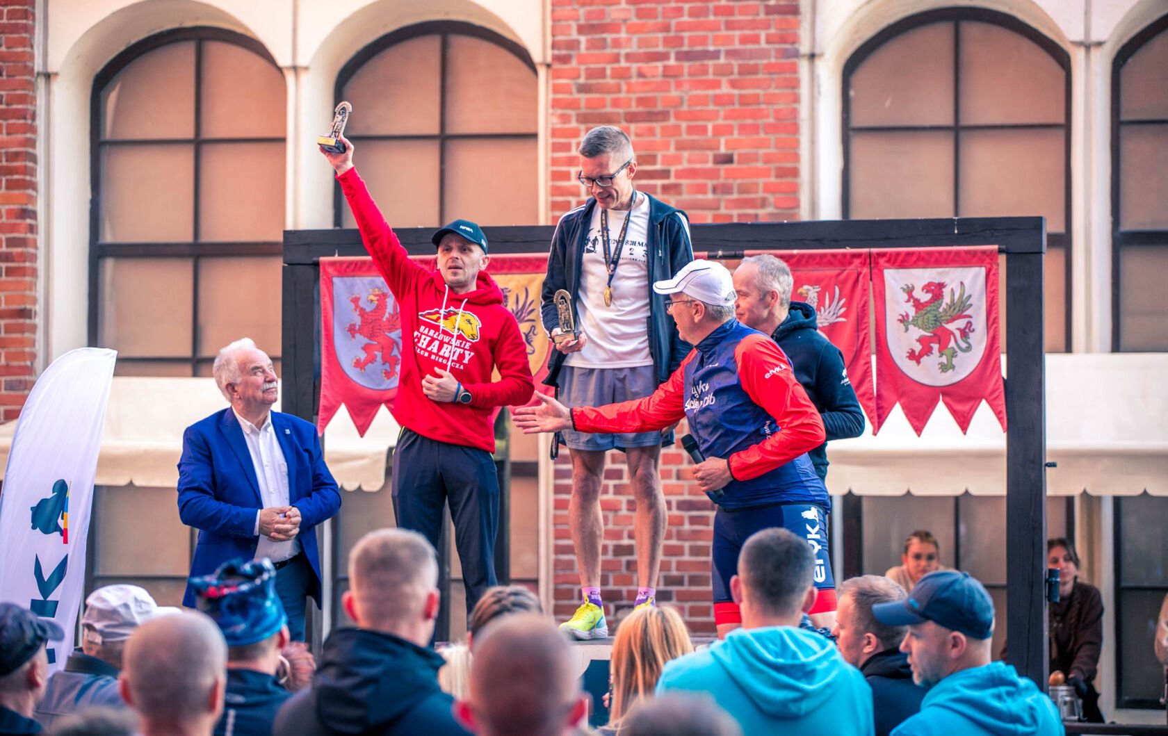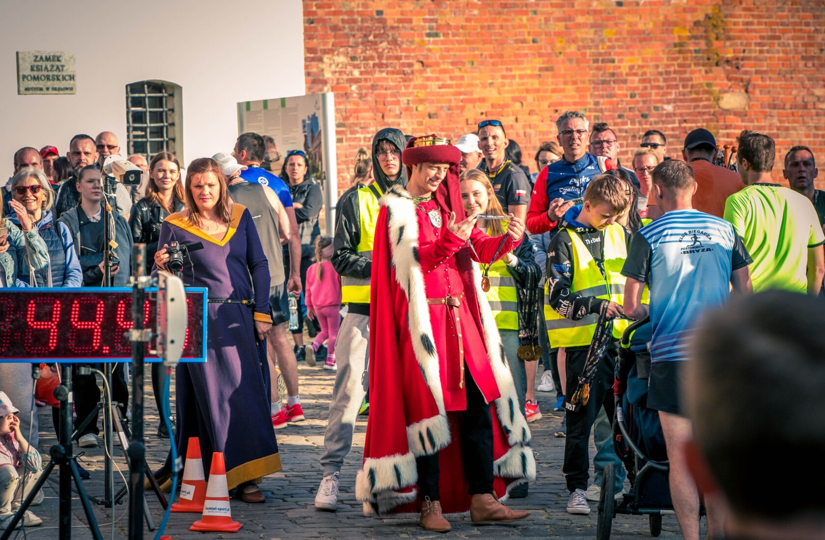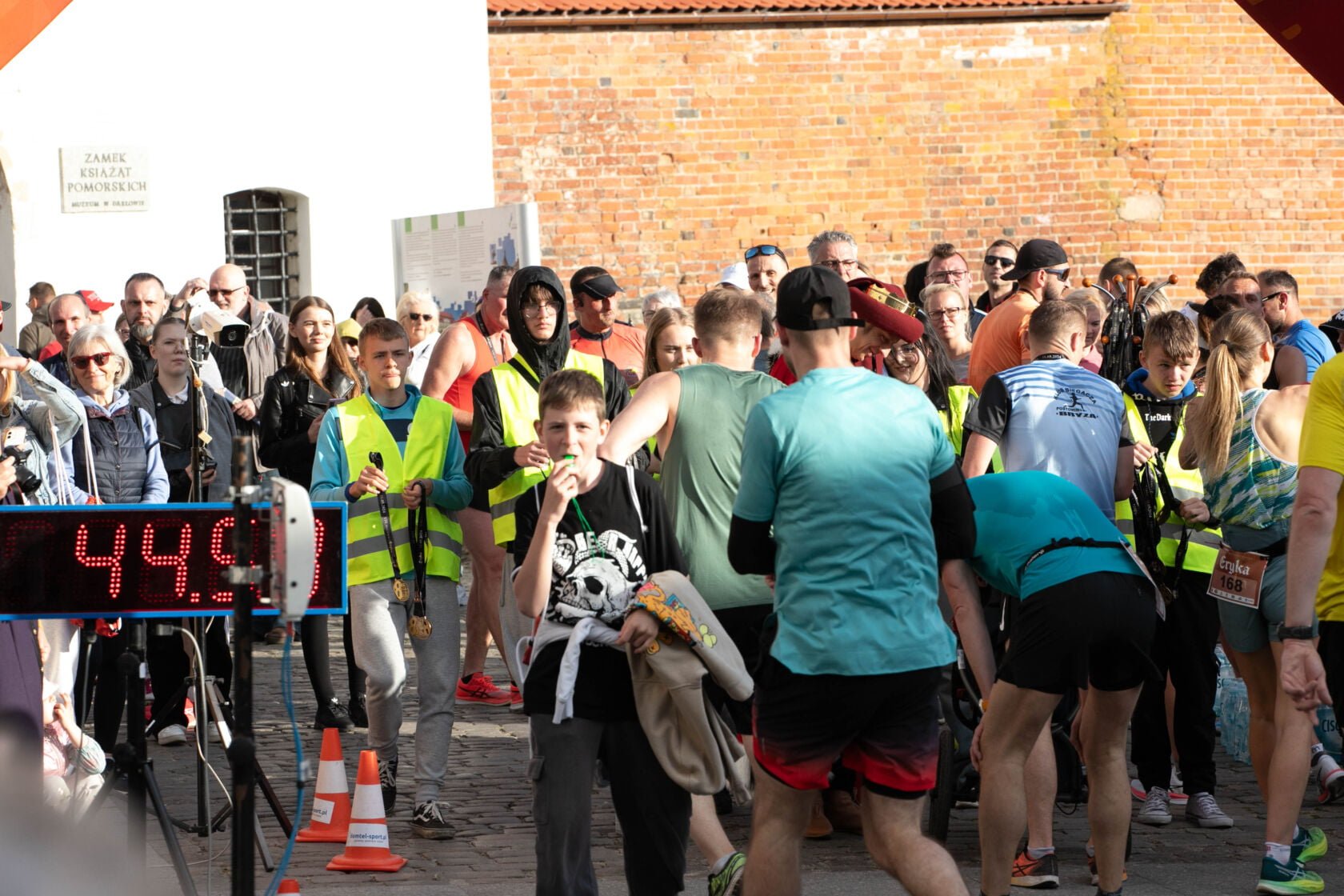 Po emocjach związanych z biegami dzieci przenieśliśmy się na Zamek Książąt Pomorskich w Darłowie. Na liście startowej biegu głównego znalazło się aż 229 osób, z czego 200 osób odebrało swoje pakiety startowe i na metę dziesięciokilometrowej trasy dobiegło 196 osób. Wśród nich 17 biegaczy i biegaczek z Klubu Darłowskie Charty.