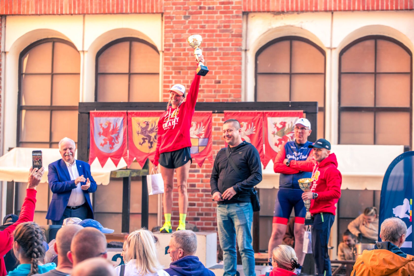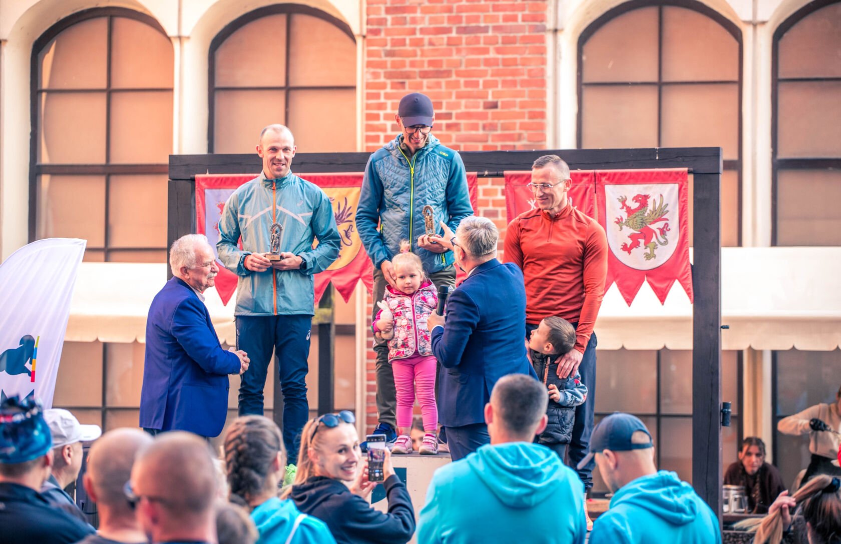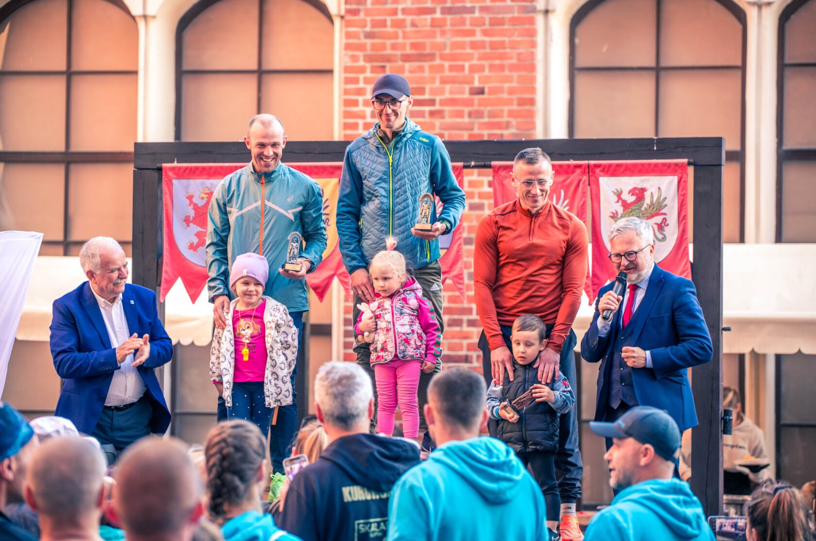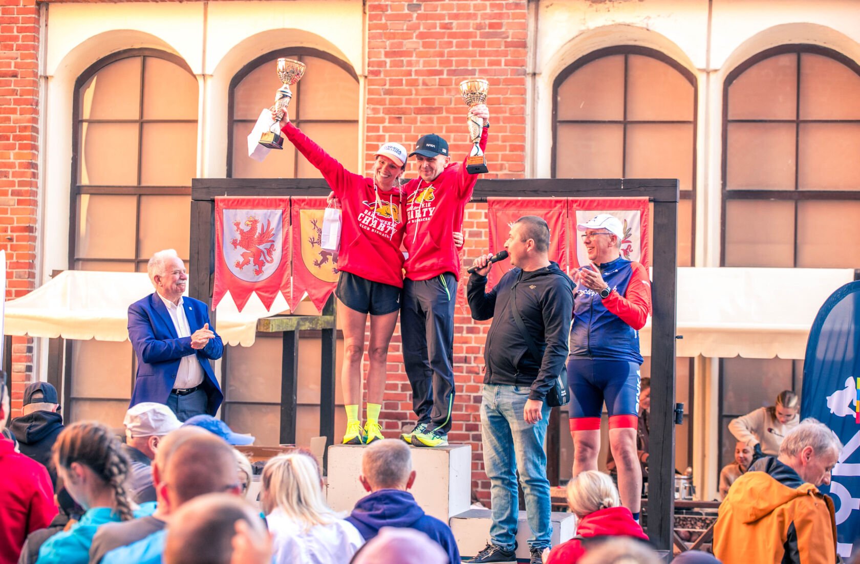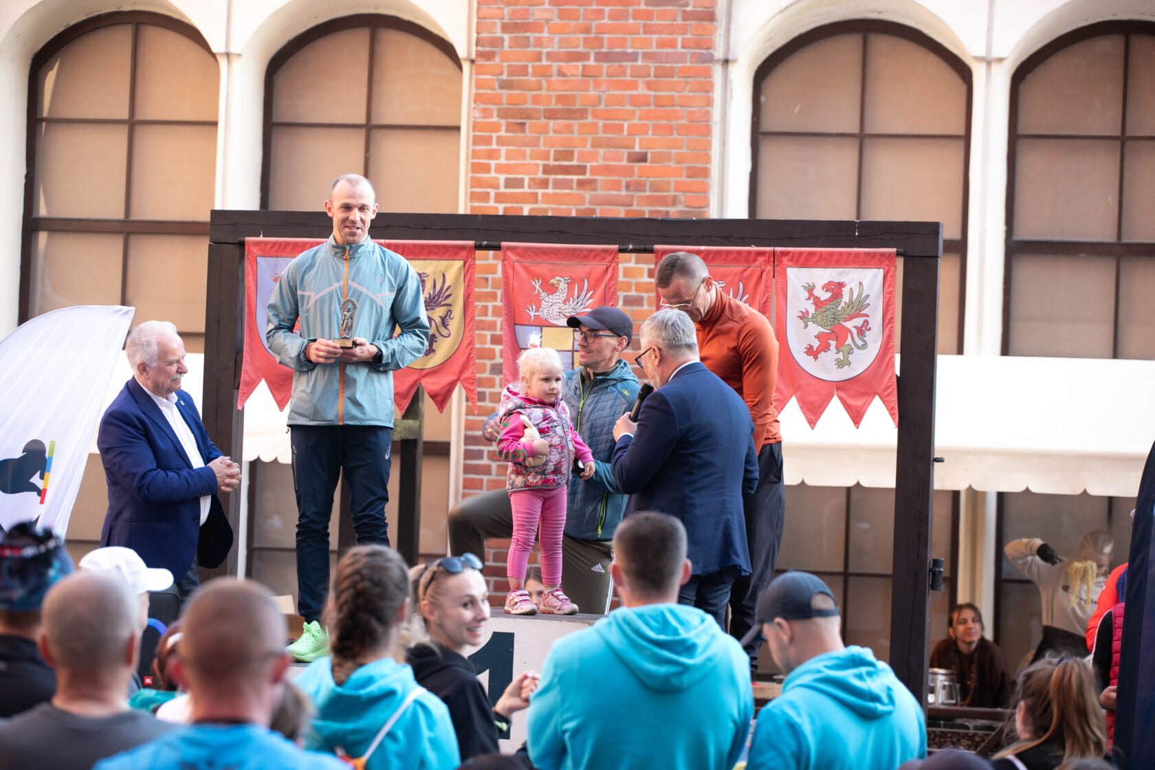 Po emocjach związanych z biegami dzieci przenieśliśmy się na Zamek Książąt Pomorskich w Darłowie. Na liście startowej biegu głównego znalazło się aż 229 osób, z czego 200 osób odebrało swoje pakiety startowe i na metę dziesięciokilometrowej trasy dobiegło 196 osób. Wśród nich 17 biegaczy i biegaczek z Klubu Darłowskie Charty.