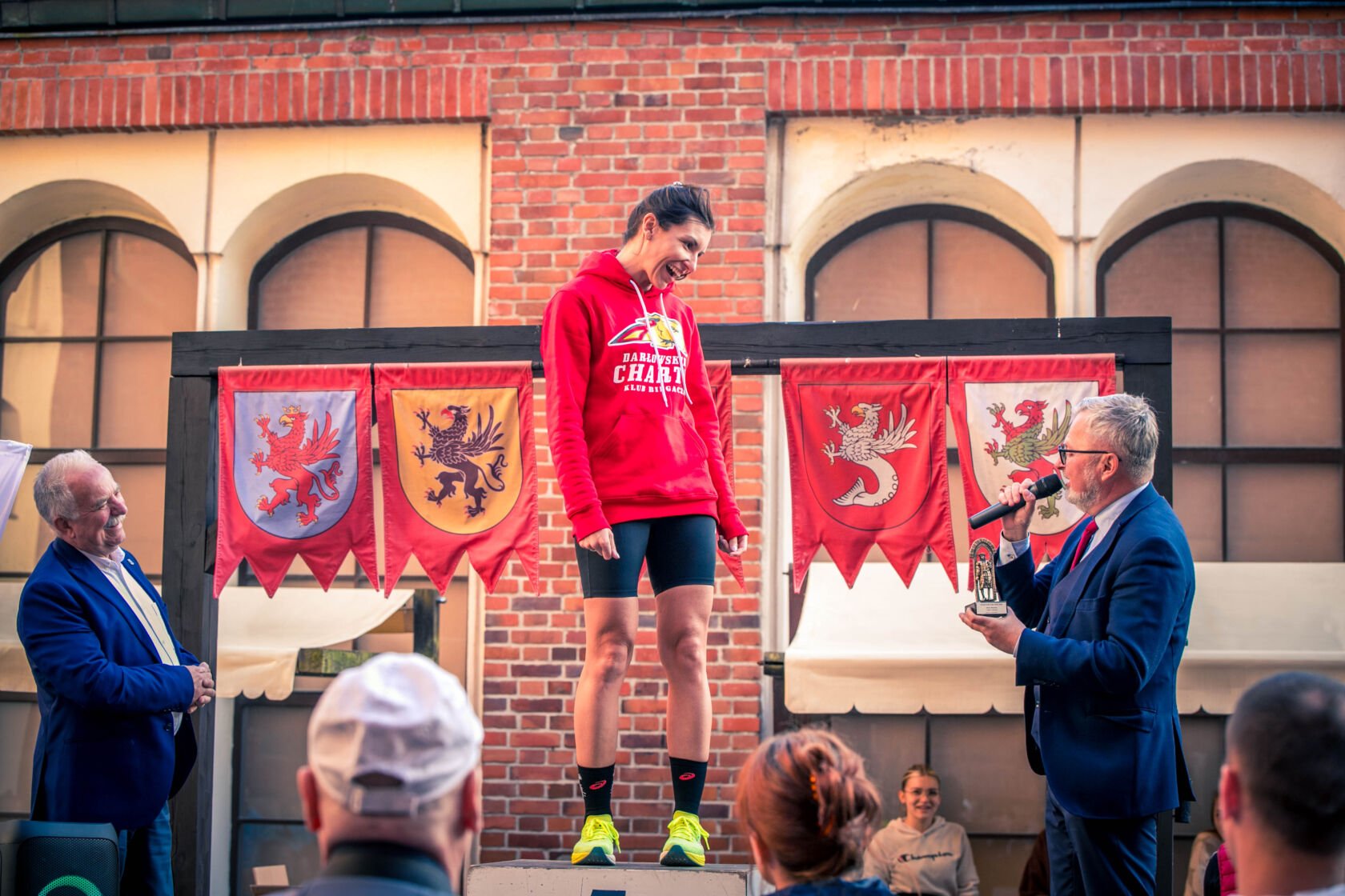 „Charcią” gwiazdą wieczoru została Katarzyna Bakalarz (czas: 43:50), która dobiegła na trzecim miejscu wśród kobiet równocześnie wygrywając kategorie: Najlepsza Darłowianka, Najlepsza zawodniczka z powiatu sławieńskiego i najlepsza zawodniczka w kategorii K40. Pani Katarzyna praktycznie nie schodziła z podium.