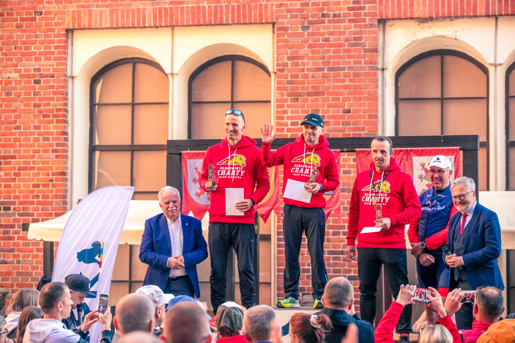 „Klub Biegacza Darłowskie Charty” dziękuje Miastu Darłowo – w szczególności pracownikom referatu sportu i rekreacji, biura promocji miasta i komunikacji społecznej, biura burmistrza – w tym prowadzącemu Danielowi Frączowi. Zespołwi Szkół Morskich w Darłowie z kolei za udostępnienie terenu i budynku szkoły na organizację biegów oraz za liczną grupę wolontariuszy, którzy wsparli organizację biegu głównego, w tym granie na żywo przy Franku (Bogdan Balcerzak i Hubert Tepurski). Zamkowi Książąt Pomorskich w Darłowie za strefę startu i mety, promocję biegu, stworzenie wspaniałej atmosfery i w szczególności za Króla Eryka, w którego rolę wcielił się niezastąpiony – Karol Matusiak. Darłowskiemu Ośrodkowi Kultury za obsługę zapisów i punkt kibicowania z muzyką przy Kinie „Bajka” Darłowo. Miejskiemu Przedsiębiorstwu Gospodarki Komunalnej Sp. z o. o. w Darłowie za pomoc przy zabezpieczaniu i porządku na trasie