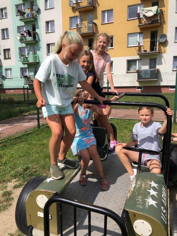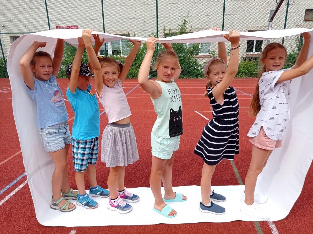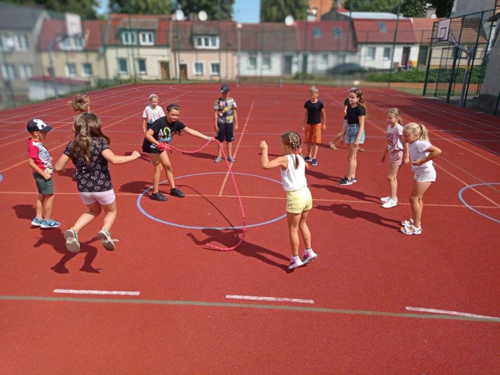Jak zawsze dzieci dużo przebywały na świeżym powietrzu korzystając z miejskich placów zabaw i boiska. Swoje lęki można było pokonywać w parku linowym a dopełnieniem radości były gofry i lody.